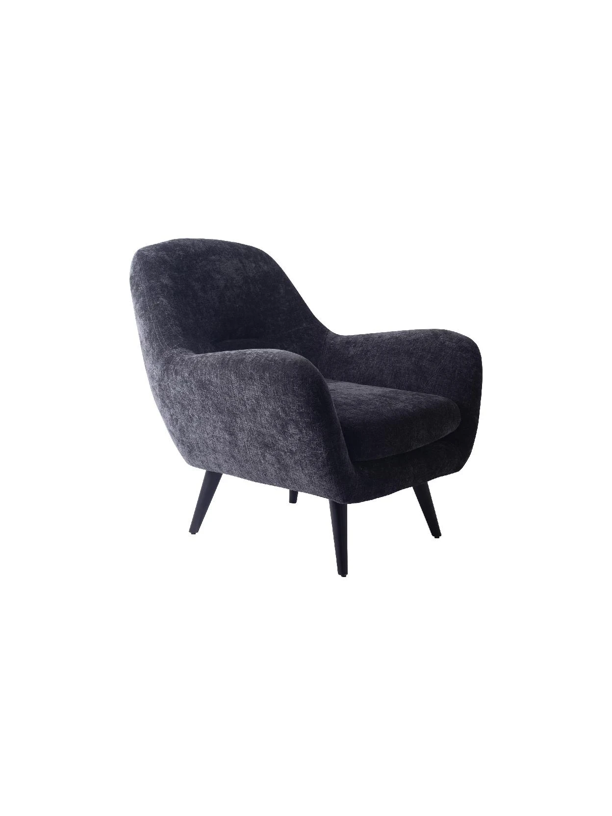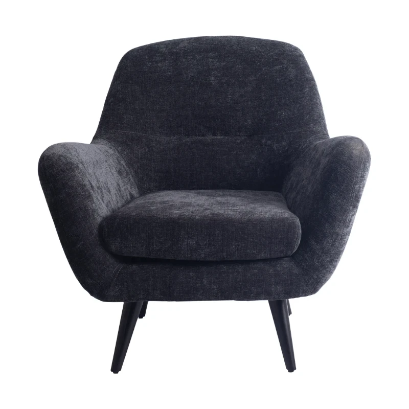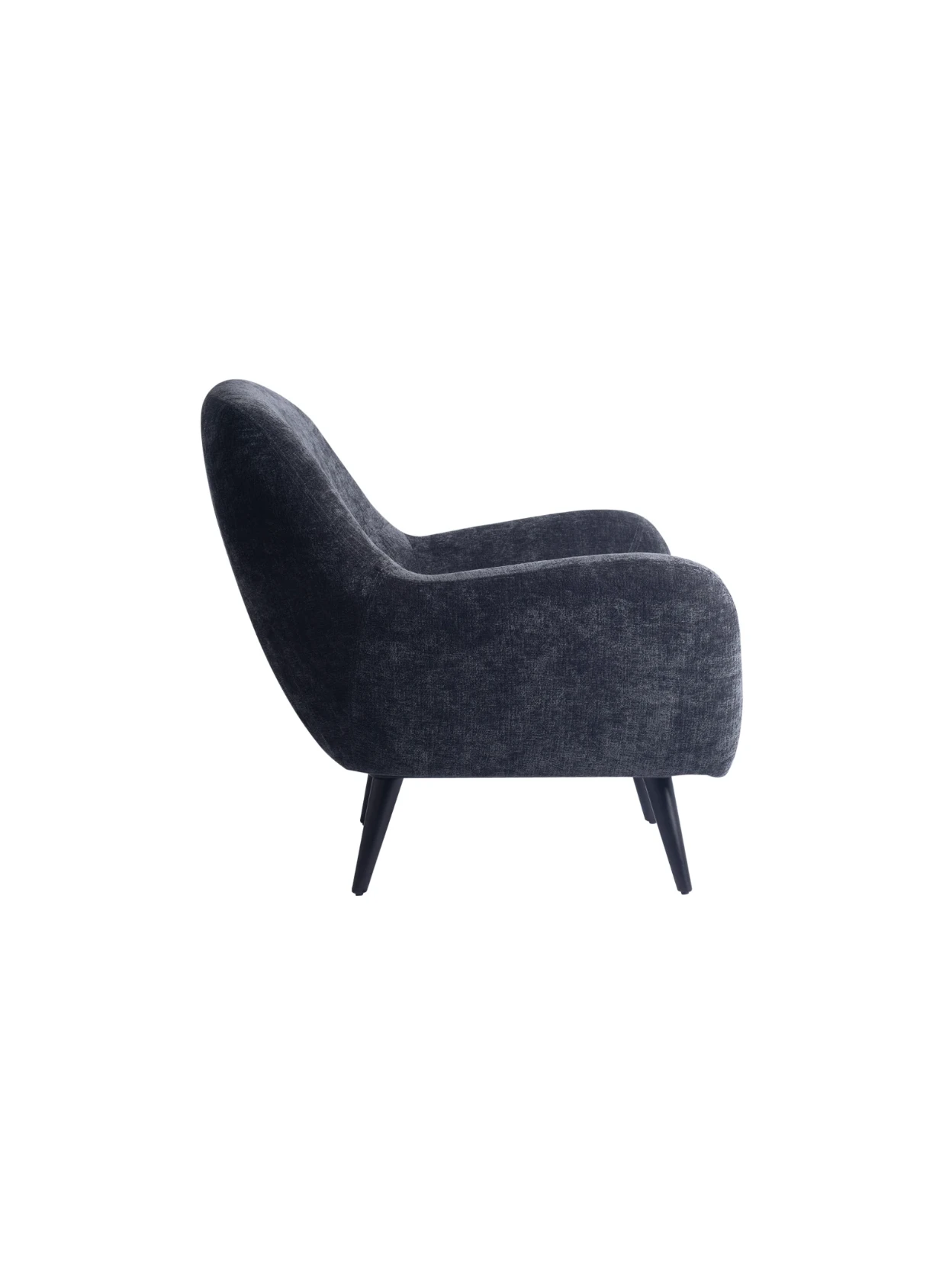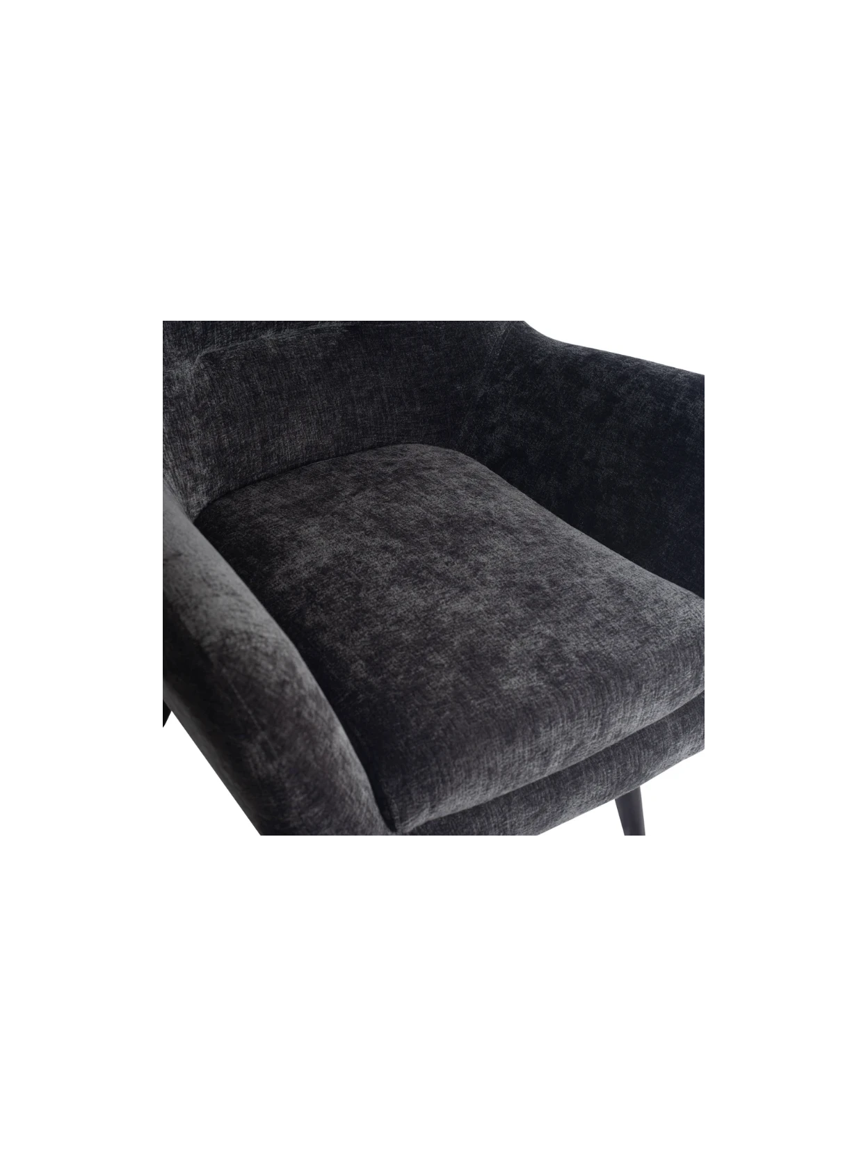 The Donny armchair by PTMD combines comfort and elegance in a modern design. Upholstered in anthracite fabric with a black wooden base, it's the perfect choice for decorating any space with style.