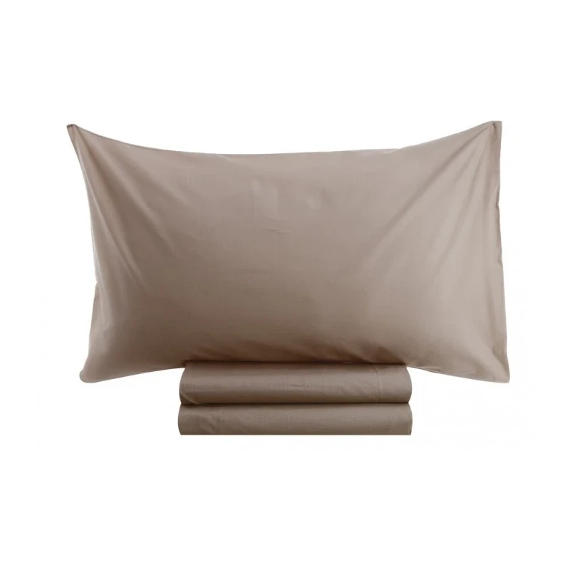 Complete double bed set with a 245x300 cm bedspread, a 180x200 cm flat sheet, and two 50x80 cm pillowcases. Made from 100% Italian cotton, it combines softness, quality, and natural style in an elegant mud color.
