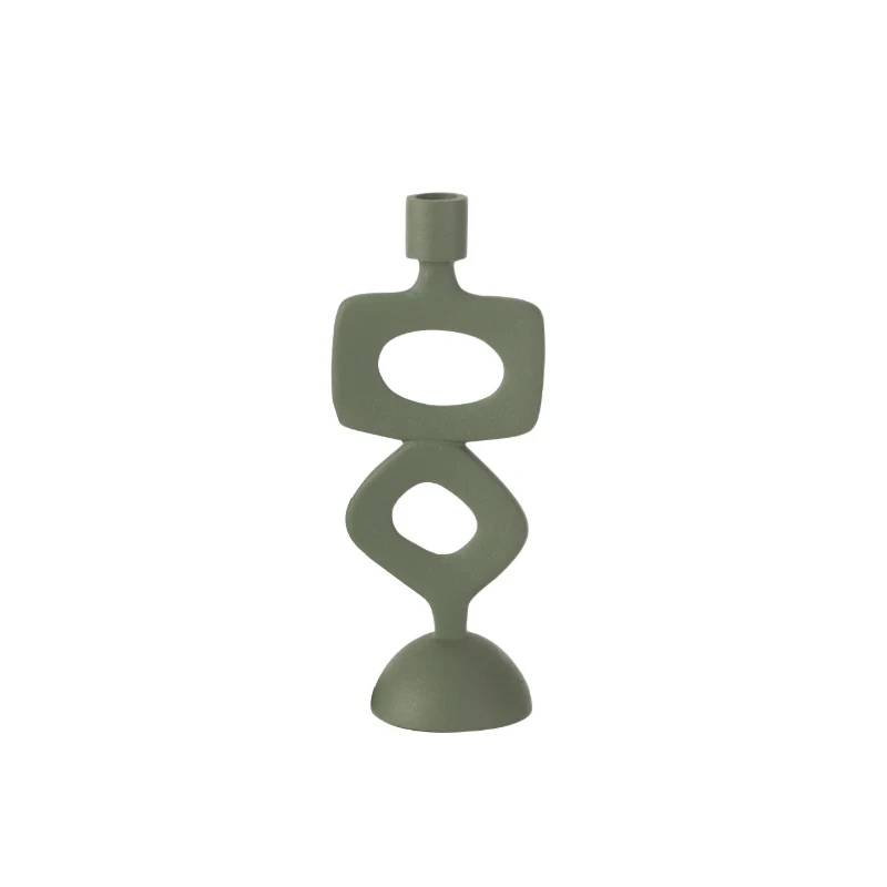 Bring a touch of originality and color to your spaces with the Green Aluminum Ring Candlestick. Crafted from durable aluminum and finished in a refined matte green, this candlestick combines lightness and solidity, becoming the centerpiece of your table or decorative accents. The tall ring design makes it modern, dynamic, and versatile, perfect for those who love contemporary decor and stylish details. Not suitable for outdoor use, it is ideal for indoor settings, creating a warm and sophisticated atmosphere. Thanks to its refined yet unobtrusive green color, this candlestick is perfect for those looking to add an elegant and innovative decorative accent, capable of enhancing any space with simplicity and taste.