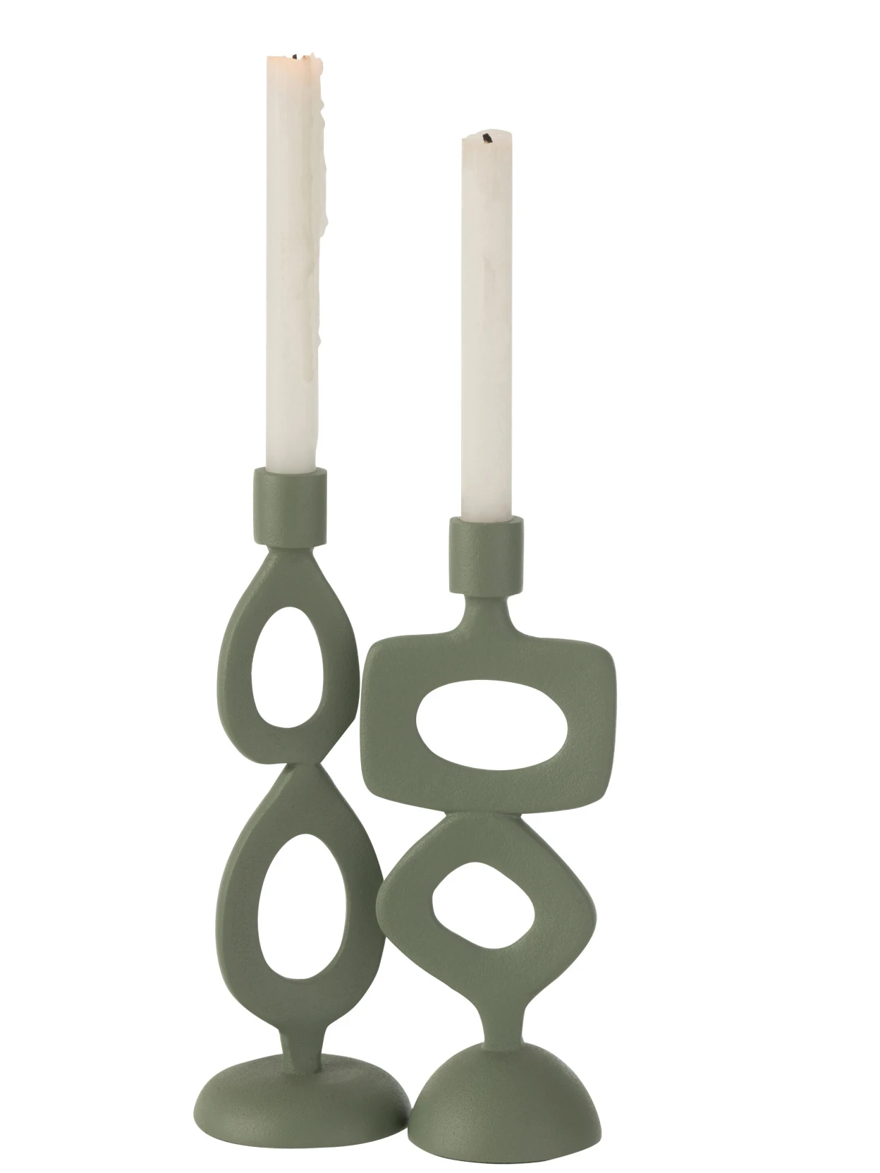 Elegant green aluminum candlestick with a modern ringed design. Perfect for refined interiors.