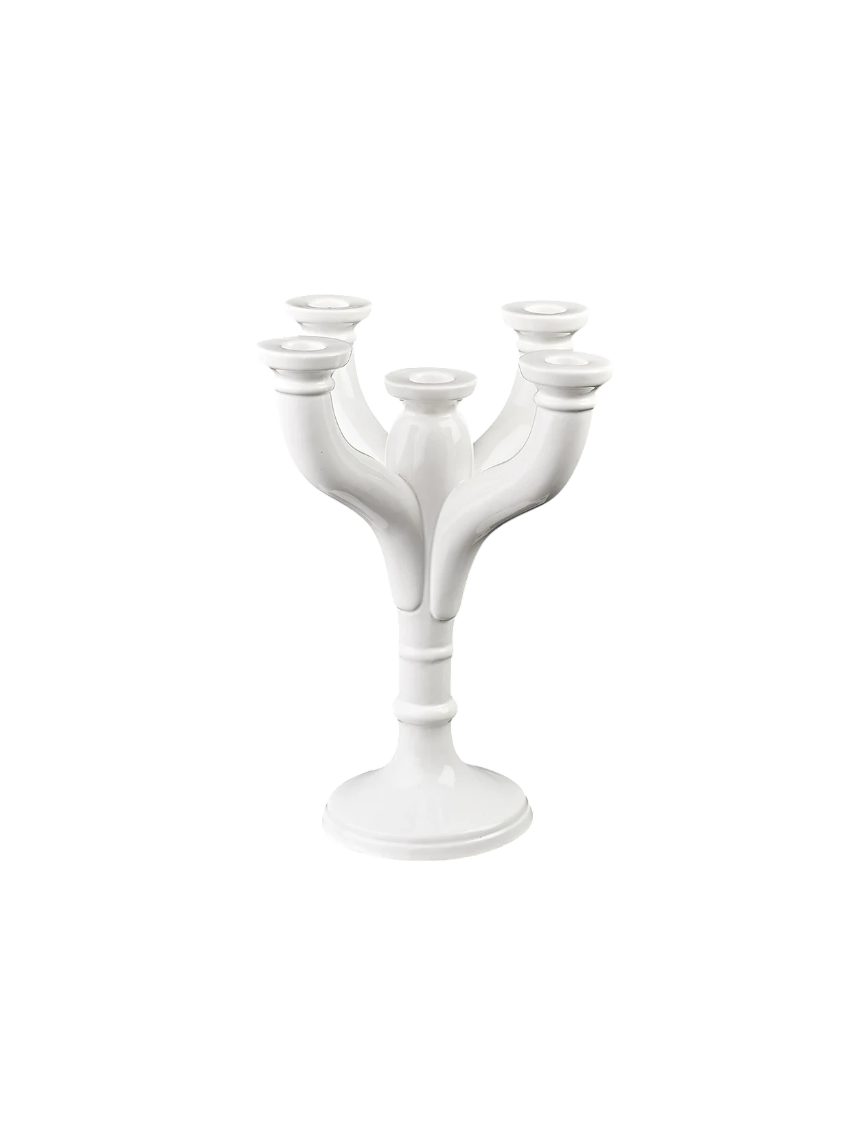 Five-armed candle holder from the Dalì collection by Henriette. Crafted from white ceramic, with a sculptural and elegant design, it adds light and sophistication to the table or living room.