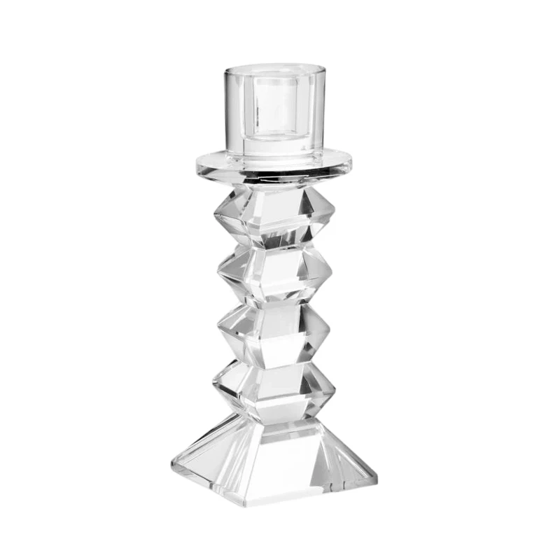 The Ottaviani clear crystal candlestick is a sophisticated, contemporary design accessory that enhances any space with its brilliance and pure lines. Crafted from fine clear crystal, its geometric design creates unique reflections and elegant plays of light. Available in two sizes, a small 19 cm and a large 24 cm, it fits perfectly in both modern and classic settings, adding a touch of style and refinement. Ideal for decorating the table, the living room, or as a precious gift, the Ottaviani candlestick embodies the essence of Italian elegance and attention to detail.