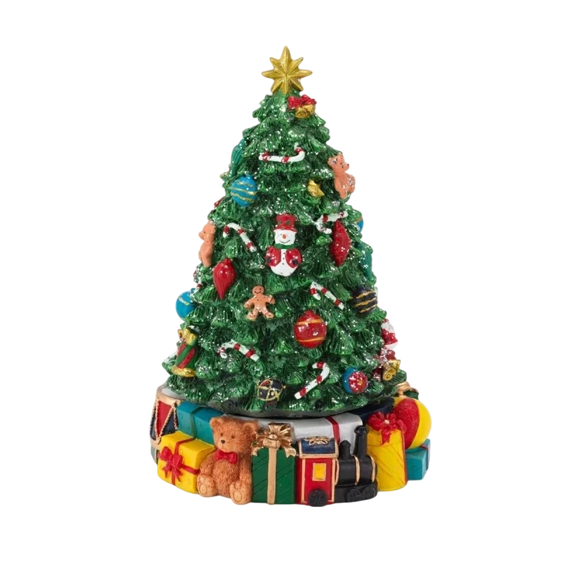 Discover the poetry of the holidays with the Musical Tree with Gifts from the Henriette Prestige Collection. A small Christmas tree comes to life with hand-painted details and a melody that fills the air with sweetness and nostalgia. This musical tree becomes a precious decorative element, perfect for embellishing desks, shelves, or bedside tables. Henriette celebrates the elegance of tradition with a creation capable of moving and inspiring moments of authentic Christmas magic.