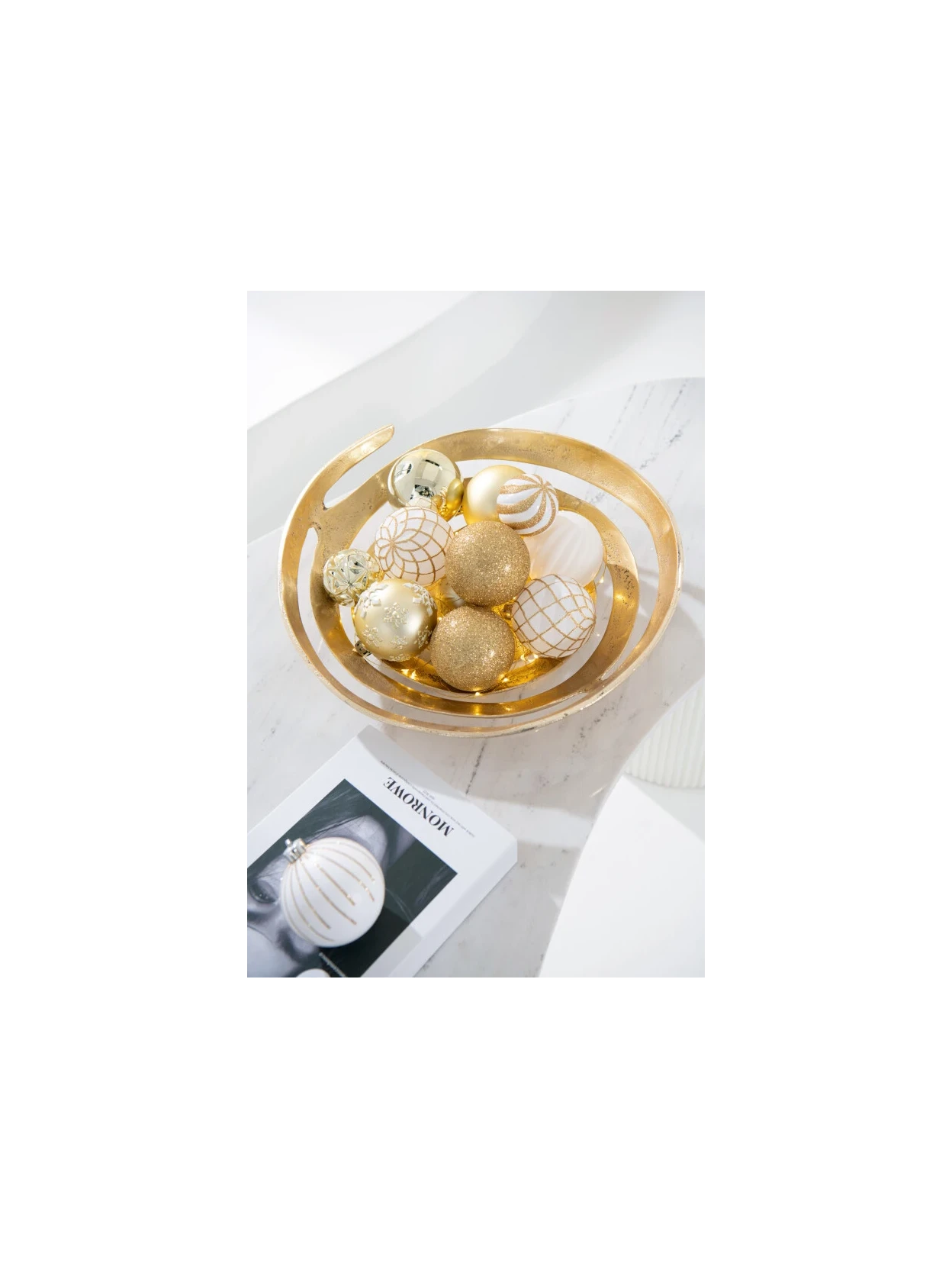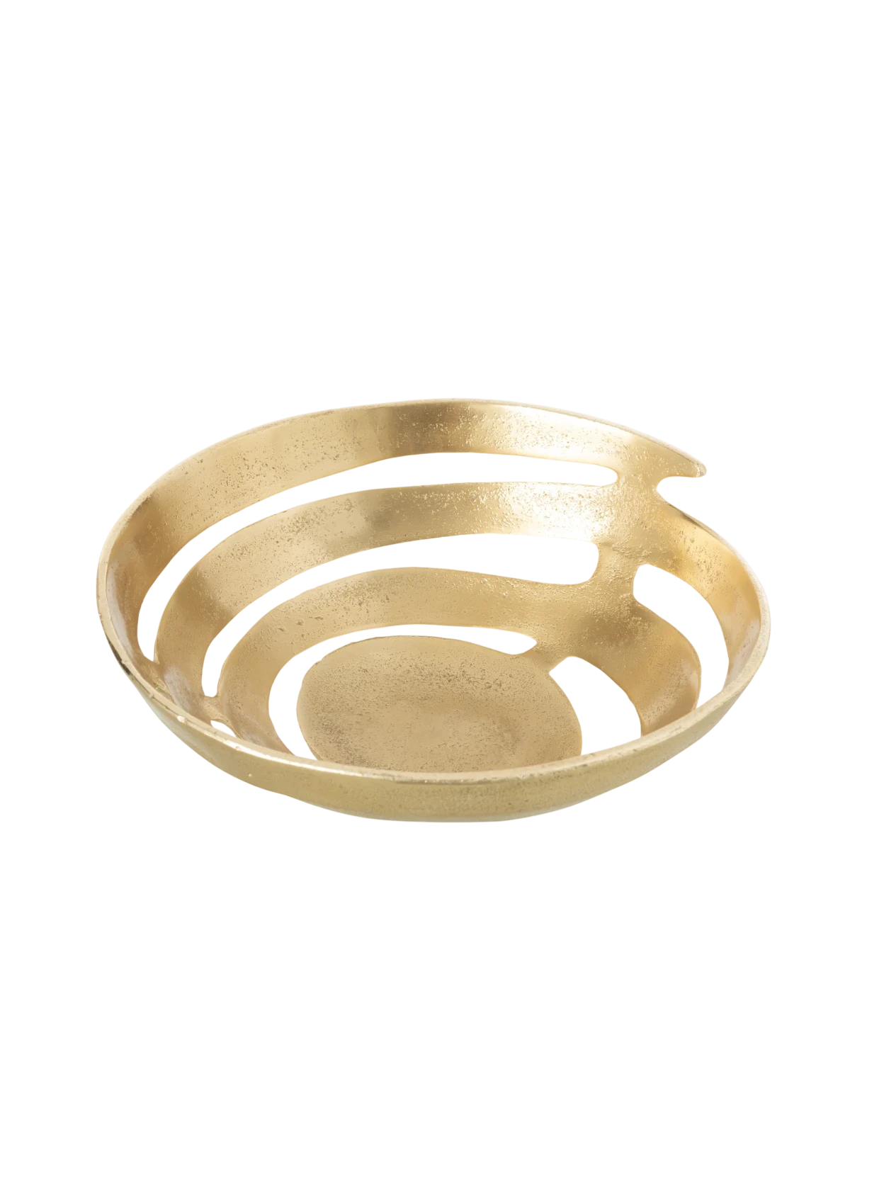 Decorative gold-colored aluminum bowl, available in two sizes. Elegant and versatile, ideal for decorating with style.