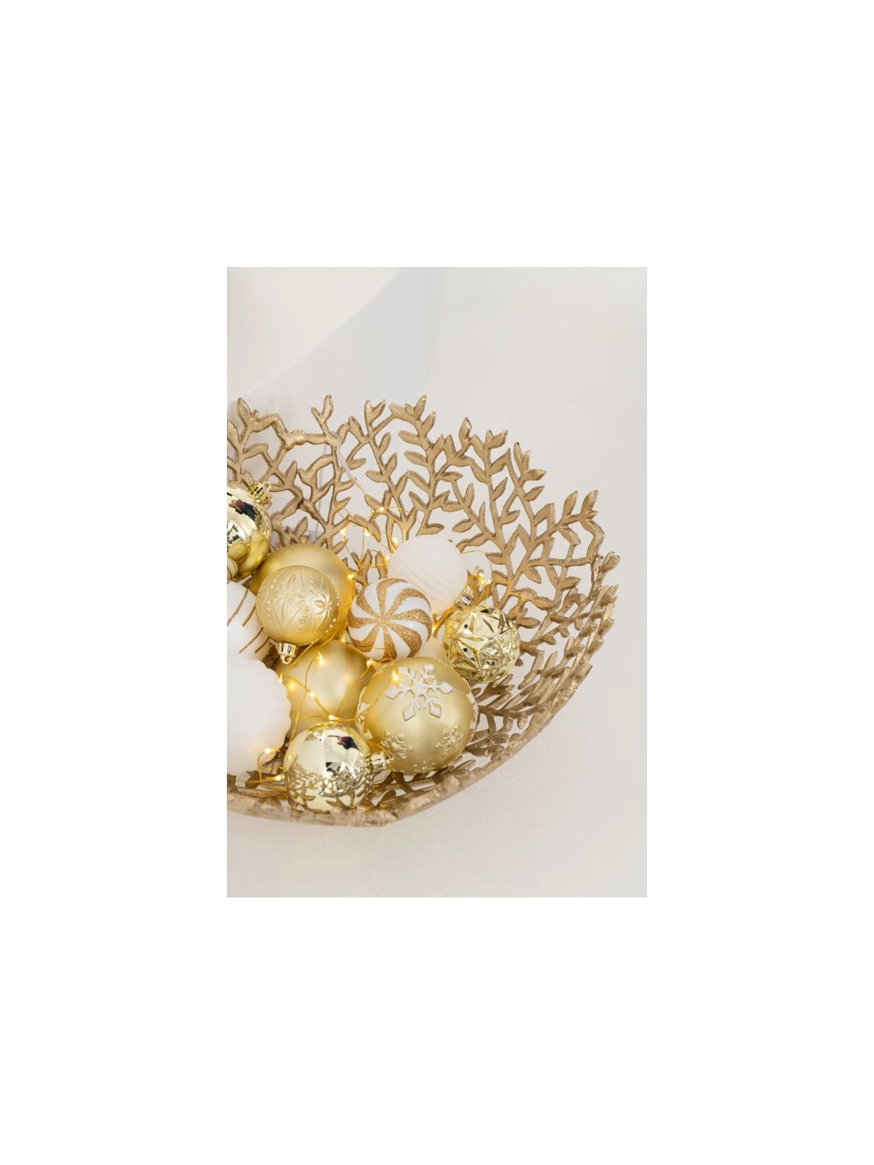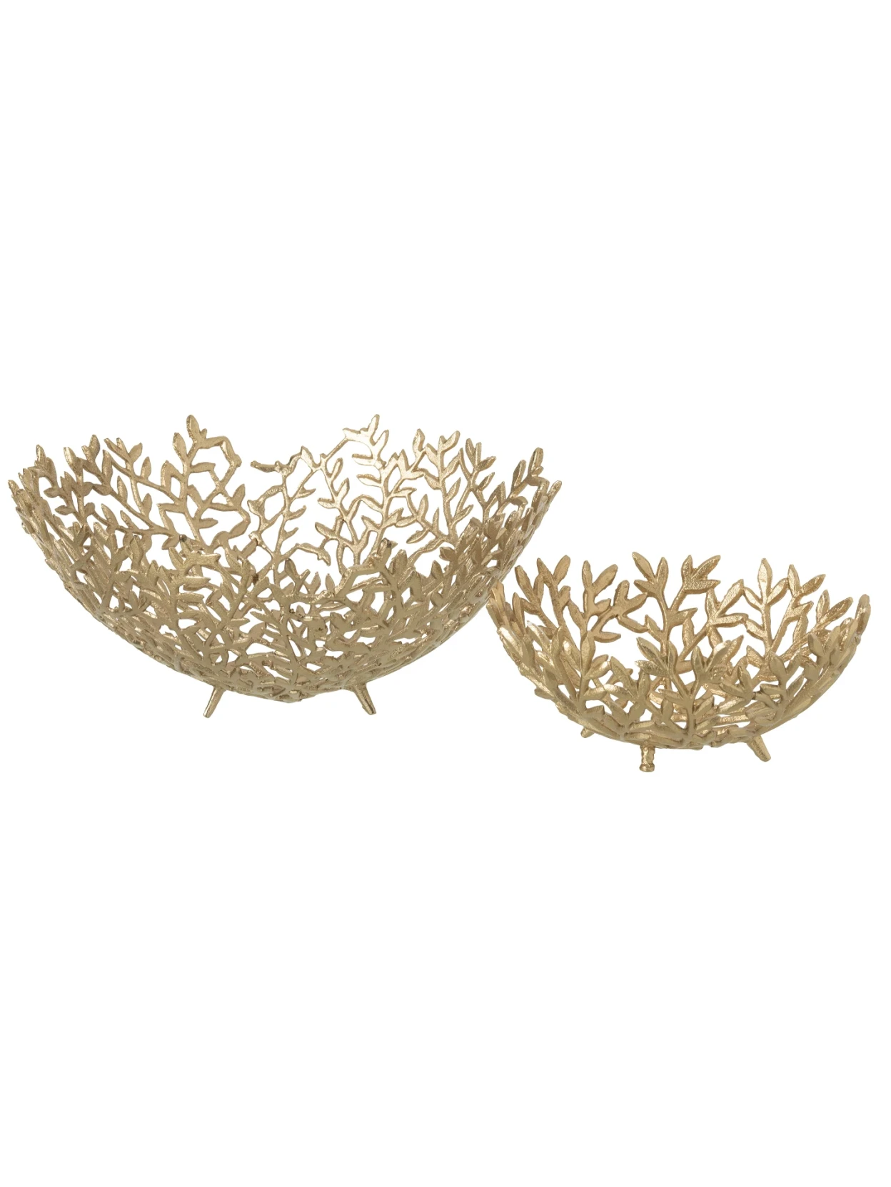 Decorative gold aluminum bowl with leaf details. Available in two sizes, small and large, perfect for adding elegance to any space.
