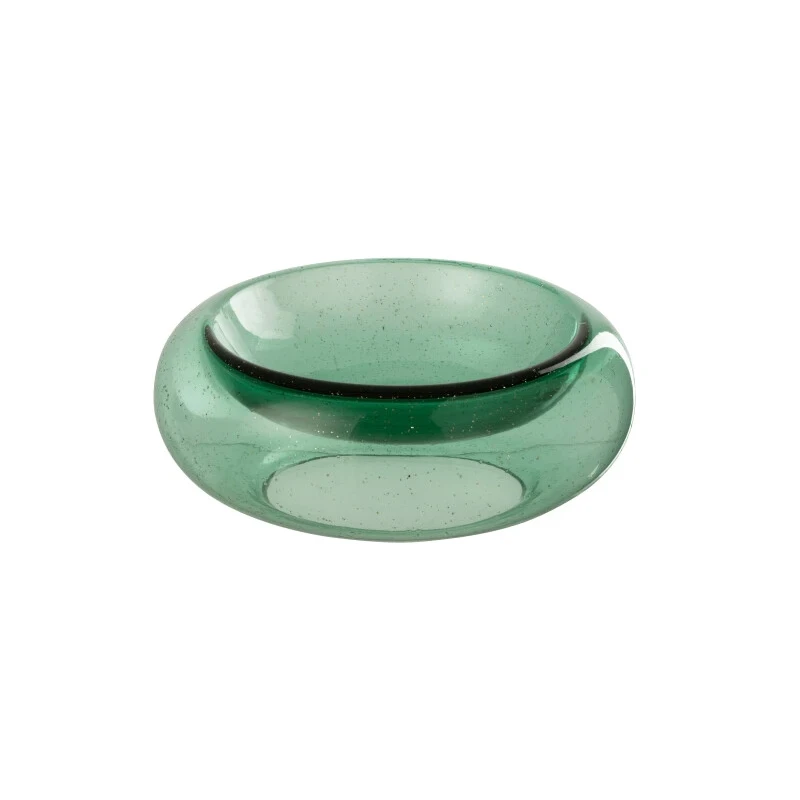 Add a touch of style with this decorative emerald glass bowl, ideal for elegant tables and spaces. Dimensions: Ø 33 cm, height 12 cm, perfect as a centerpiece or decorative element.