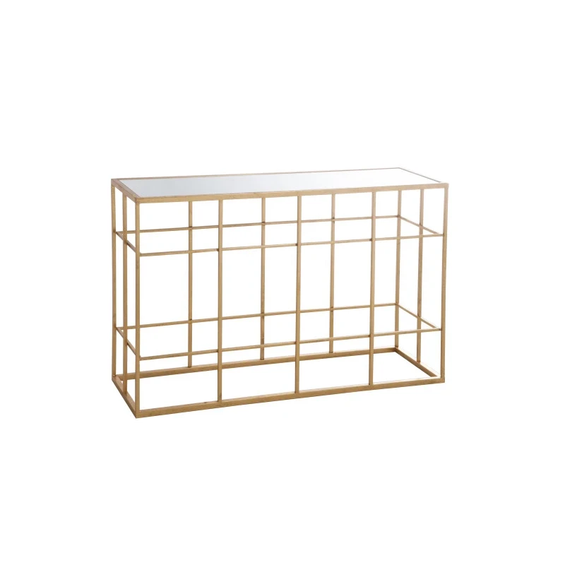 Enhance your entryway or living room with this elegant and modern gold-colored metal and glass console table.