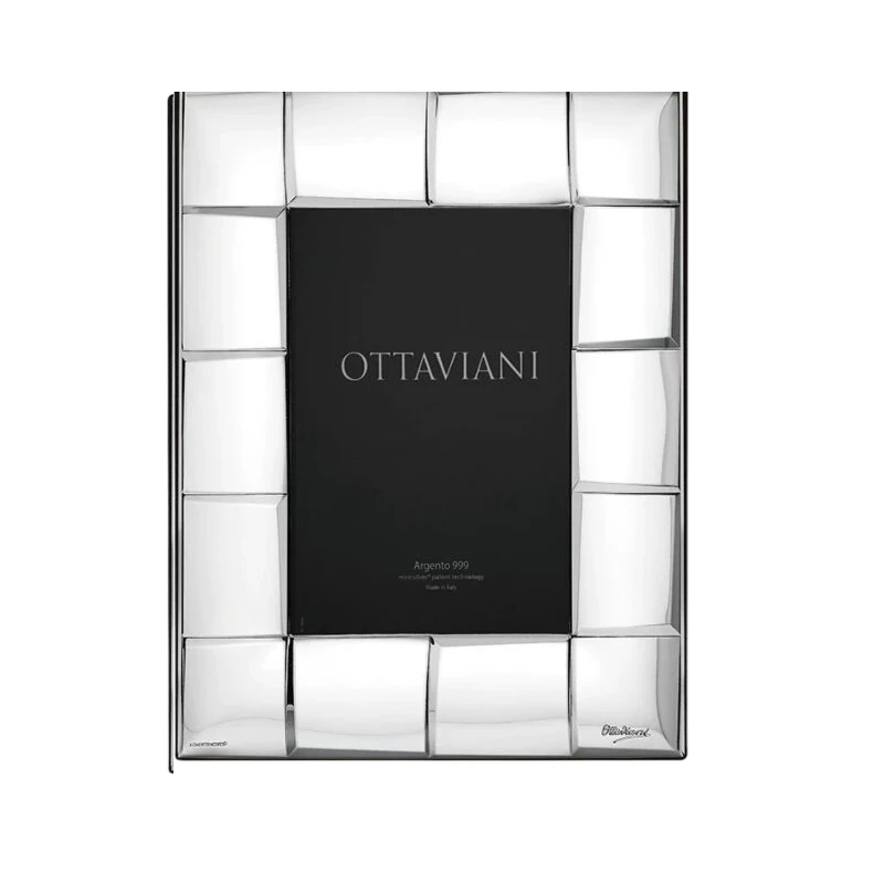 The Ottaviani Square photo frame in 999 silver combines contemporary style and quality craftsmanship. The linear, square frame creates a modern, minimalist effect, showcasing photographs with understated elegance. Crafted from pure 999 silver, it is available in 13x18 cm and 18x24 cm formats, ideal for showcasing important memories or as a refined gift. Perfect for any space, the Ottaviani Square photo frame adds a touch of class and timeless brilliance, representing an elegant and precious furnishing accessory.