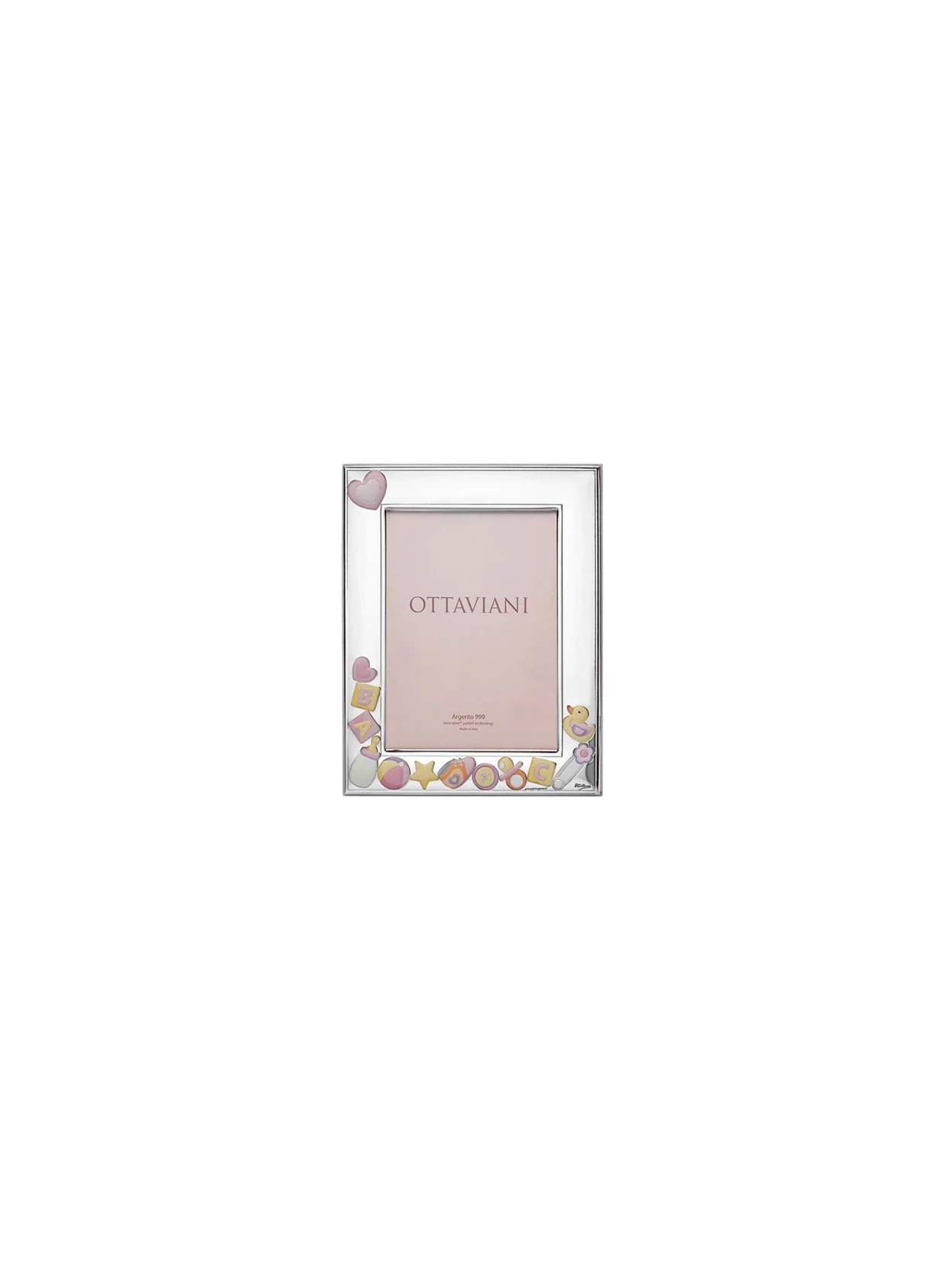 The Ottaviani Baby Duck photo frame in 999 silver combines elegance and tenderness in a delicate and refined design. The frame, embellished with pink details and a cute duck motif, is designed for little ones, making every photograph even more special. Available in 9x13 cm and 13x18 cm formats, it's an ideal gift for a birth, baptism, or first birthday, or simply to preserve precious memories of your little girl's growth. Ottaviani's quality and craftsmanship ensure a precious, elegant, and timeless object, perfect for a child's bedroom or as a special gift.style.