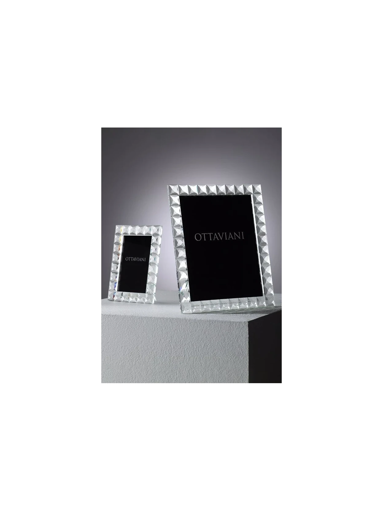 The Ottaviani Crystal Photo Frame - Square is a contemporary and refined furnishing accessory. Crafted entirely from clear crystal, it features an elegant geometric relief that enhances its brilliance and reflects light beautifully. Measuring 20x25 cm, it's perfect for showcasing important photographs or as a gift for special occasions. Ottaviani's quality and design make this photo frame a classy object, capable of enhancing any space with understated elegance and timeless brilliance.