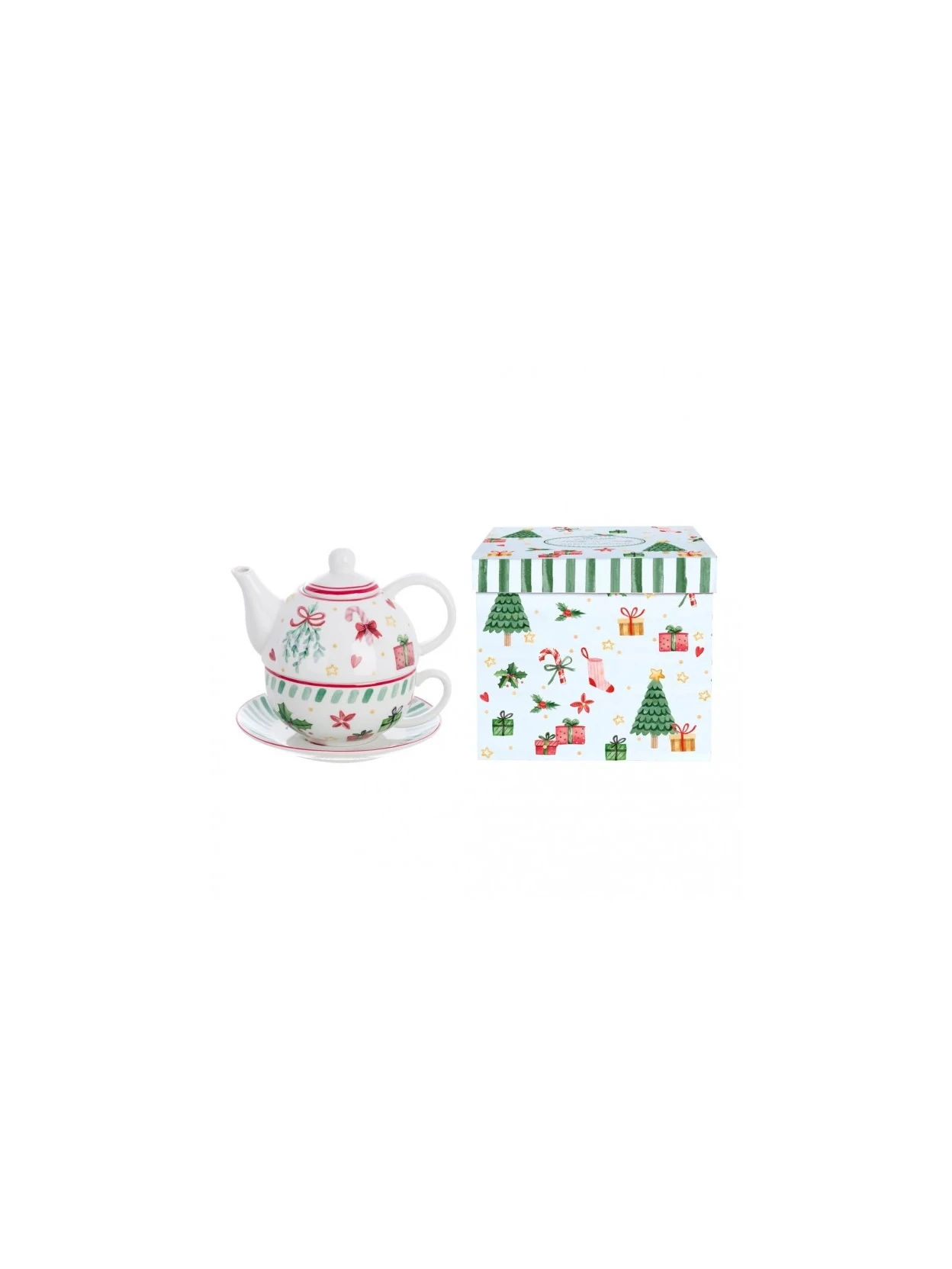 Teapot with cup and saucer from the Holly and Jolly collection in decorated porcelain. Delicate Christmas motifs and a gift box included for a moment of sweet, festive relaxation.