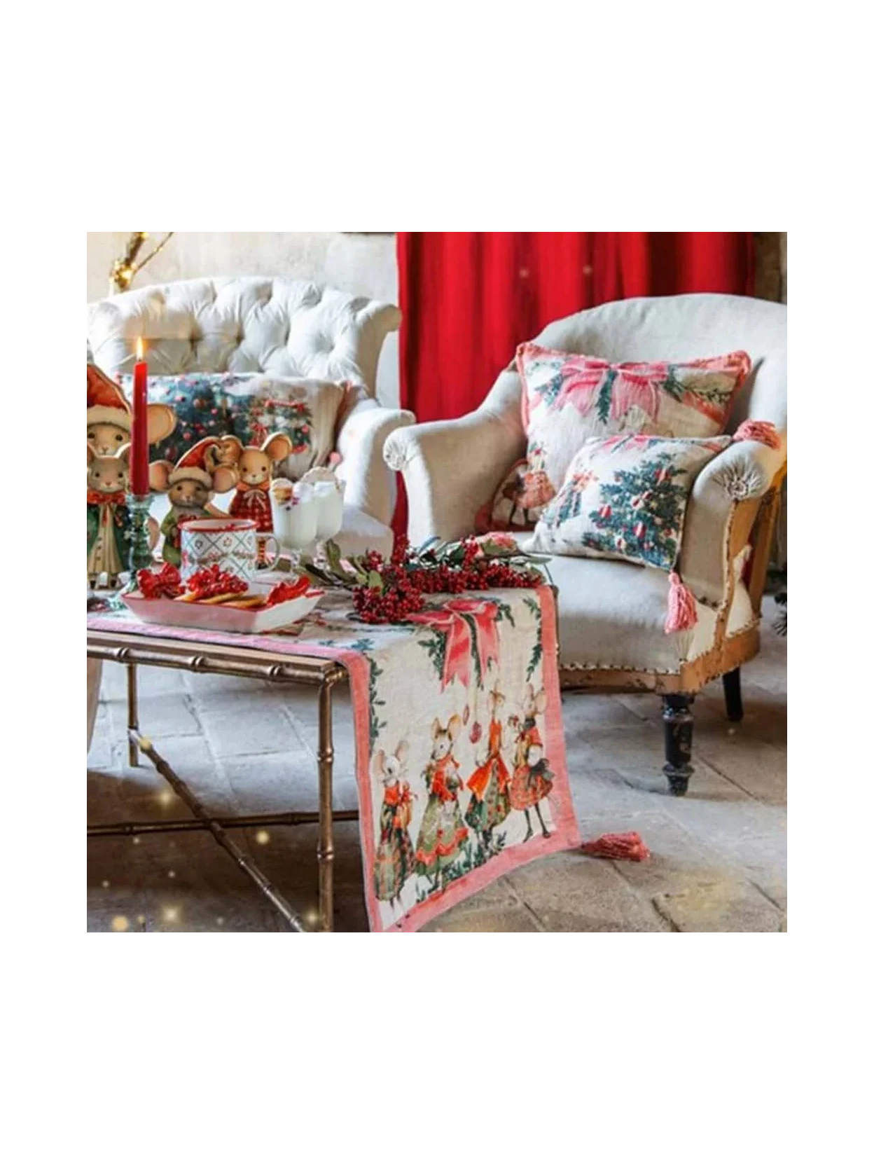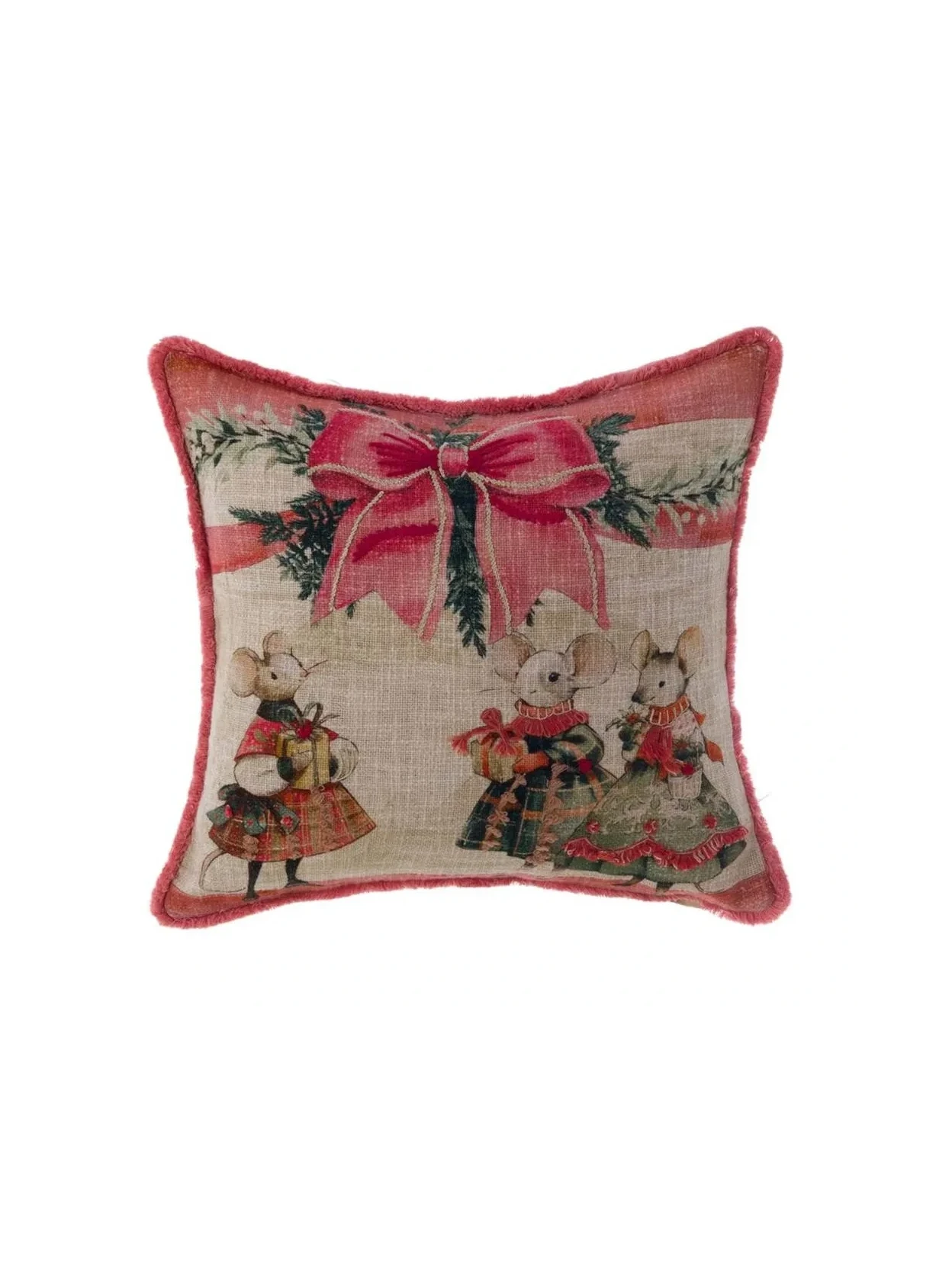 100% cotton cushion, printed and embroidered, featuring cute Christmas mice and festive details. A warm and decorative touch to make your home magical during the holidays.