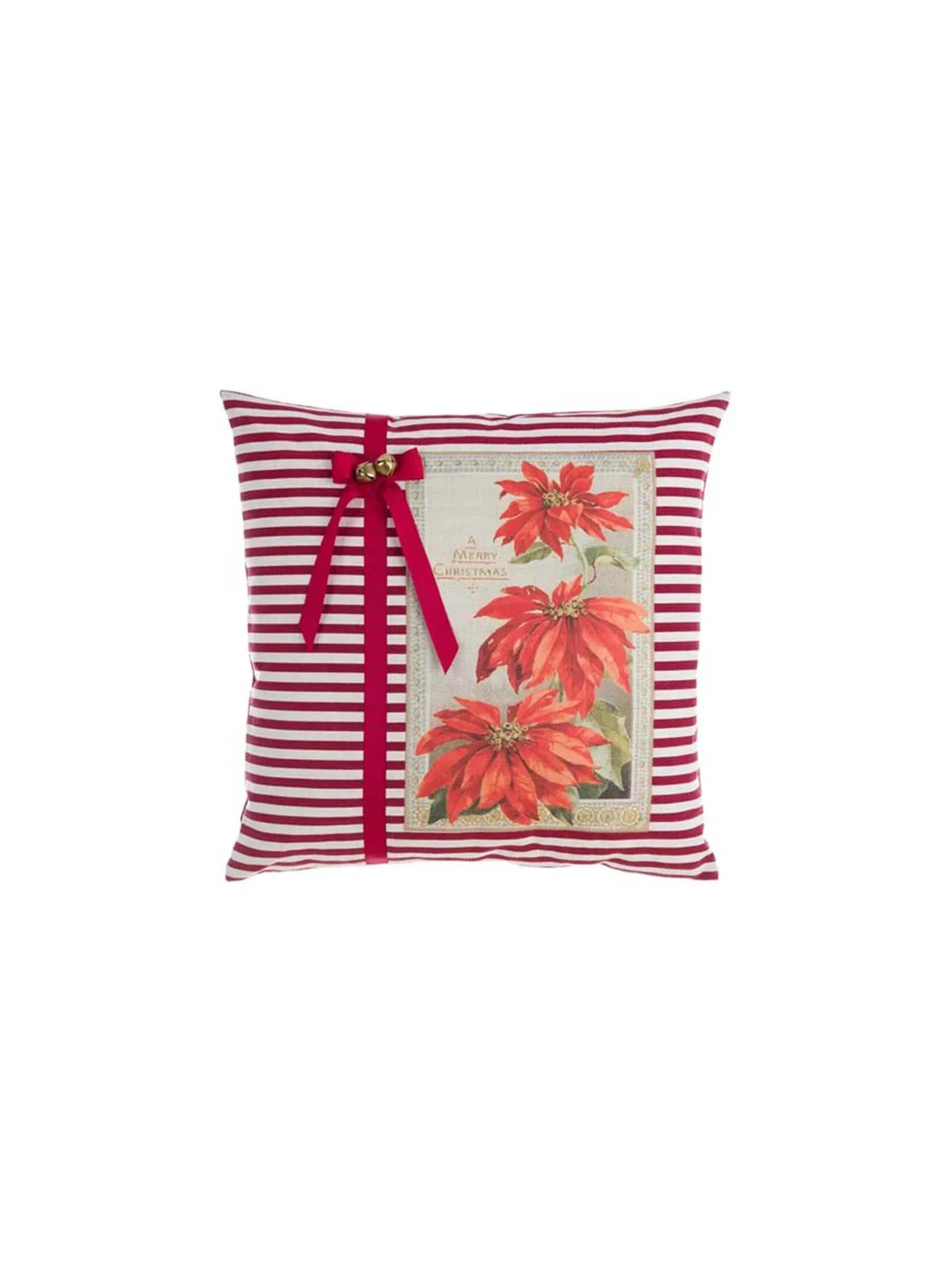 45x45 cm cotton cushion with a striped and Christmas star pattern. Embellished with a red bow and two bells, it's perfect for decorating sofas and armchairs with a festive and refined touch.