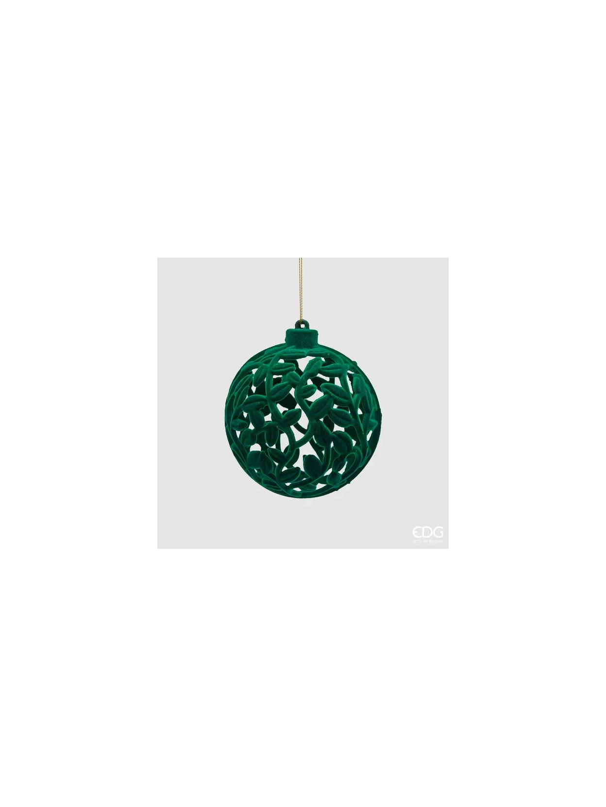 Elegant decorative Christmas ball made of plastic covered in green velvet. Perfect for decorating Christmas trees, wreaths, or centerpieces.