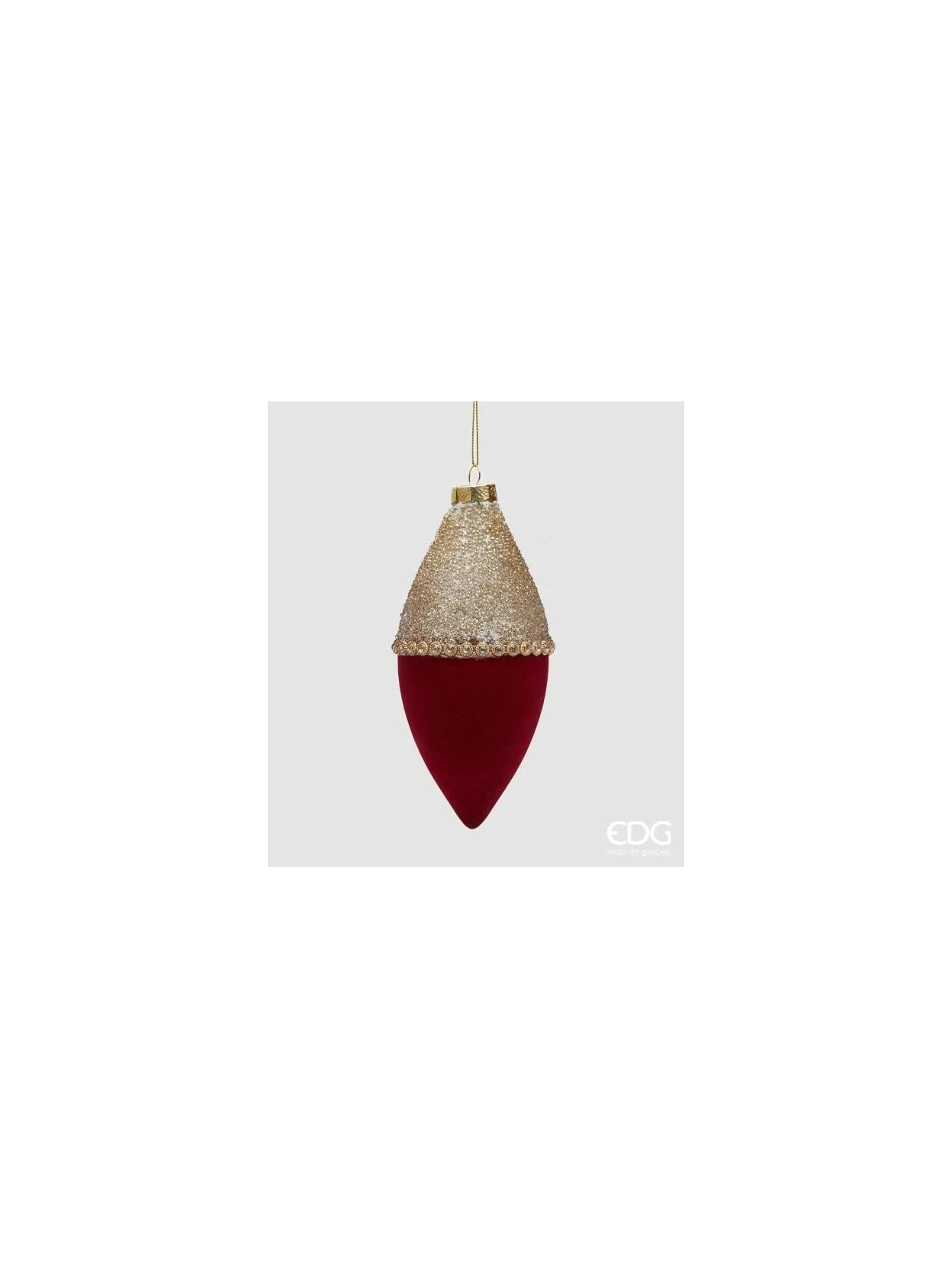 Make your Christmas sparkle with these refined two-tone glass ornaments. Each piece combines the brilliance of the gold top, decorated with glitter and microbeads, with the intensity of the red bottom, creating an elegant and precious effect. Available in 3 assorted shapes (ball, spinning top, and spindle), these ornaments (H. 17 cm, D. 10 cm) reflect the light with golden shimmers and red accents that will give your tree a sophisticated and festive charm. Perfect for those who desire a bright, elegant Christmas full of unique details.