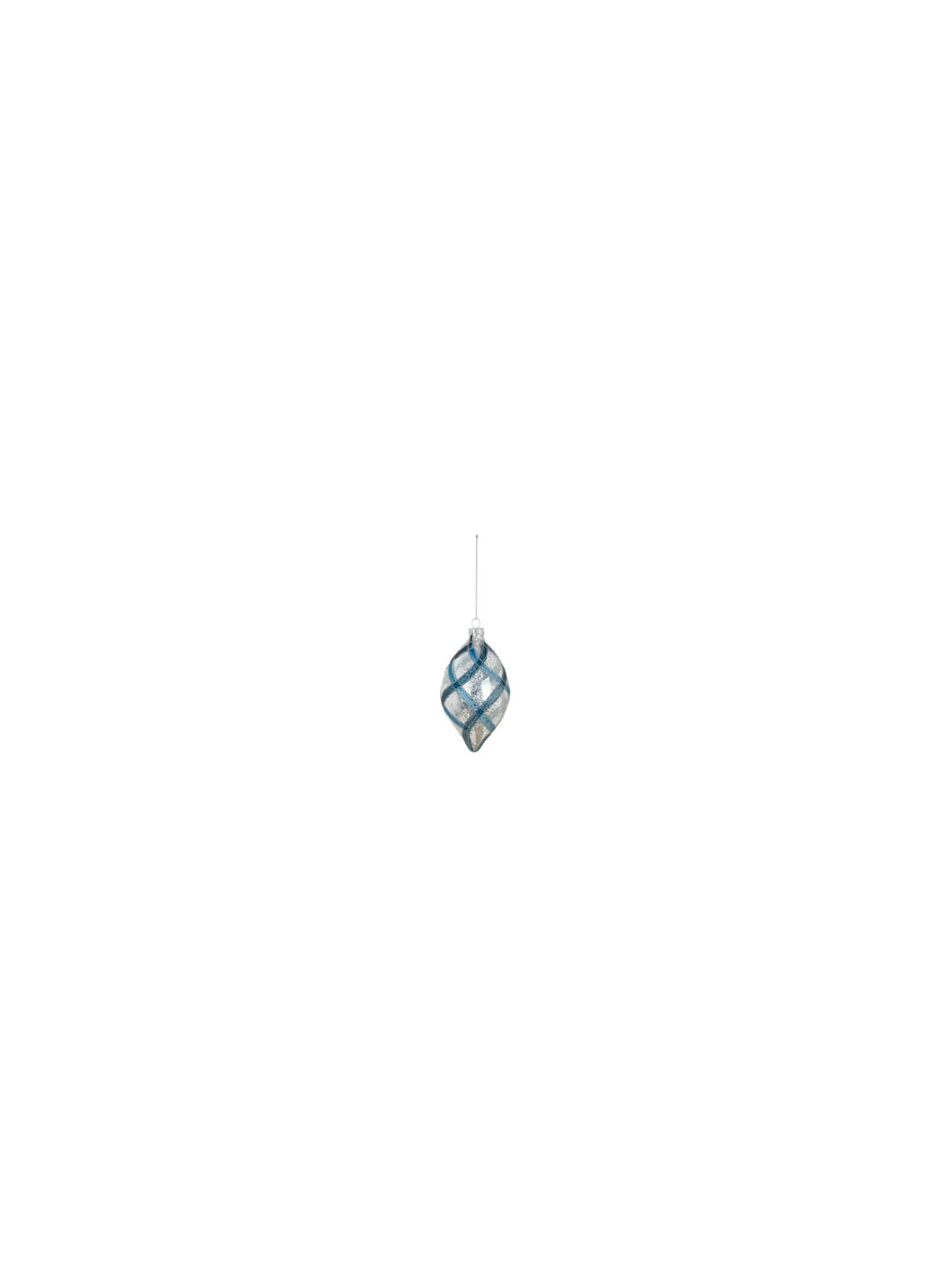 The glass Christmas bauble from Blanc MariClò's Ornamenta Collection is an elegant decoration that combines classic charm and contemporary design. Crafted from glass, it stands 14 cm tall and features a refined interweaving of blue and silver lines that harmoniously reflect the light, creating a magical and festive atmosphere. Perfect for enhancing your Christmas tree, its brilliance and sinuous shapes complement both traditional and modern styles. This Christmas decoration is available in three versions: A, B, or C, allowing you to create unique and personalized combinations. Blanc MariClò's artisanal quality and timeless elegance make each variation a true Christmas gem, ideal for those wishing to embellish their home or as a special gift with refined taste.