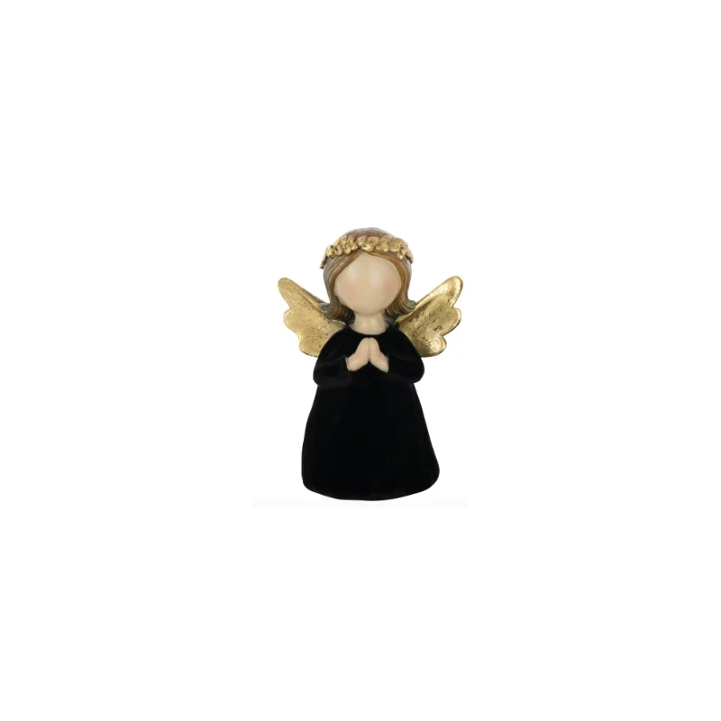 J-Line - Velvet / Polyresin Angel Decoration - Black A