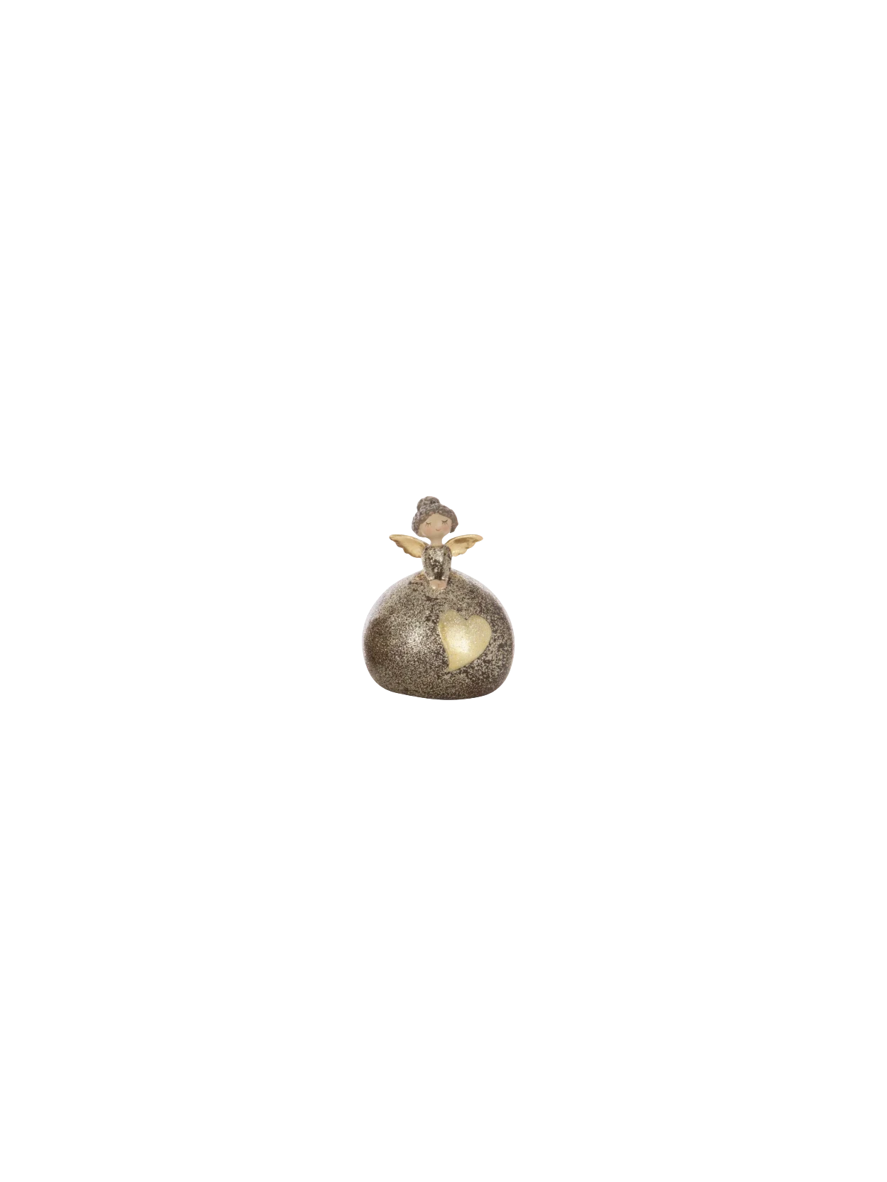 Multicolored polyresin decoration, depicting an angel with clasped hands and a golden heart at the bottom.