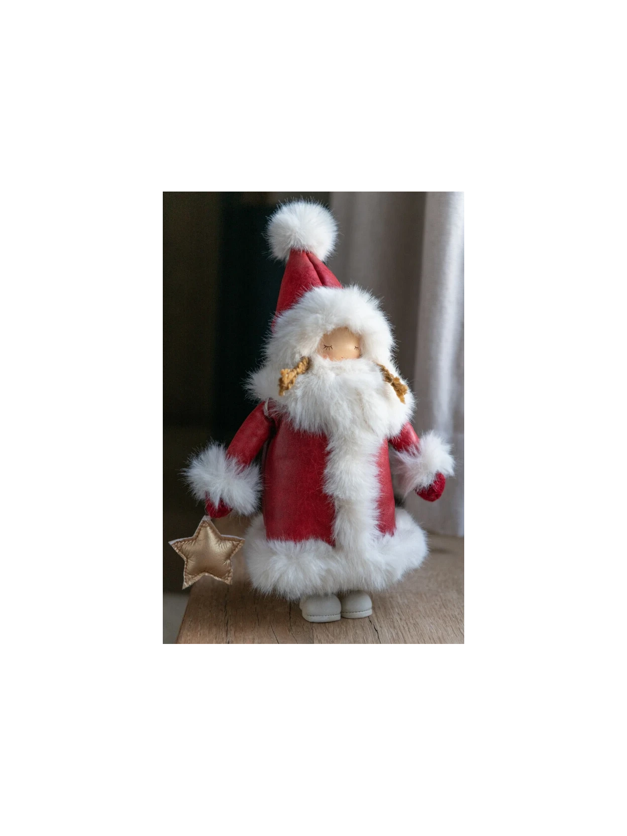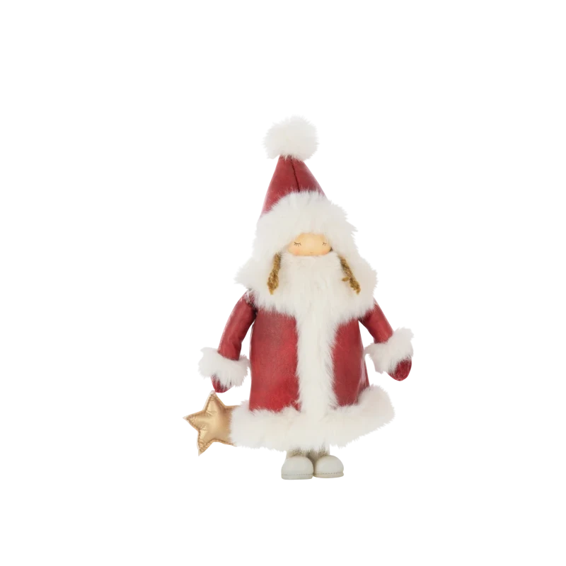 Polyester decoration depicting a little girl dressed as Santa Claus holding a golden star. Ideal for festive interiors.