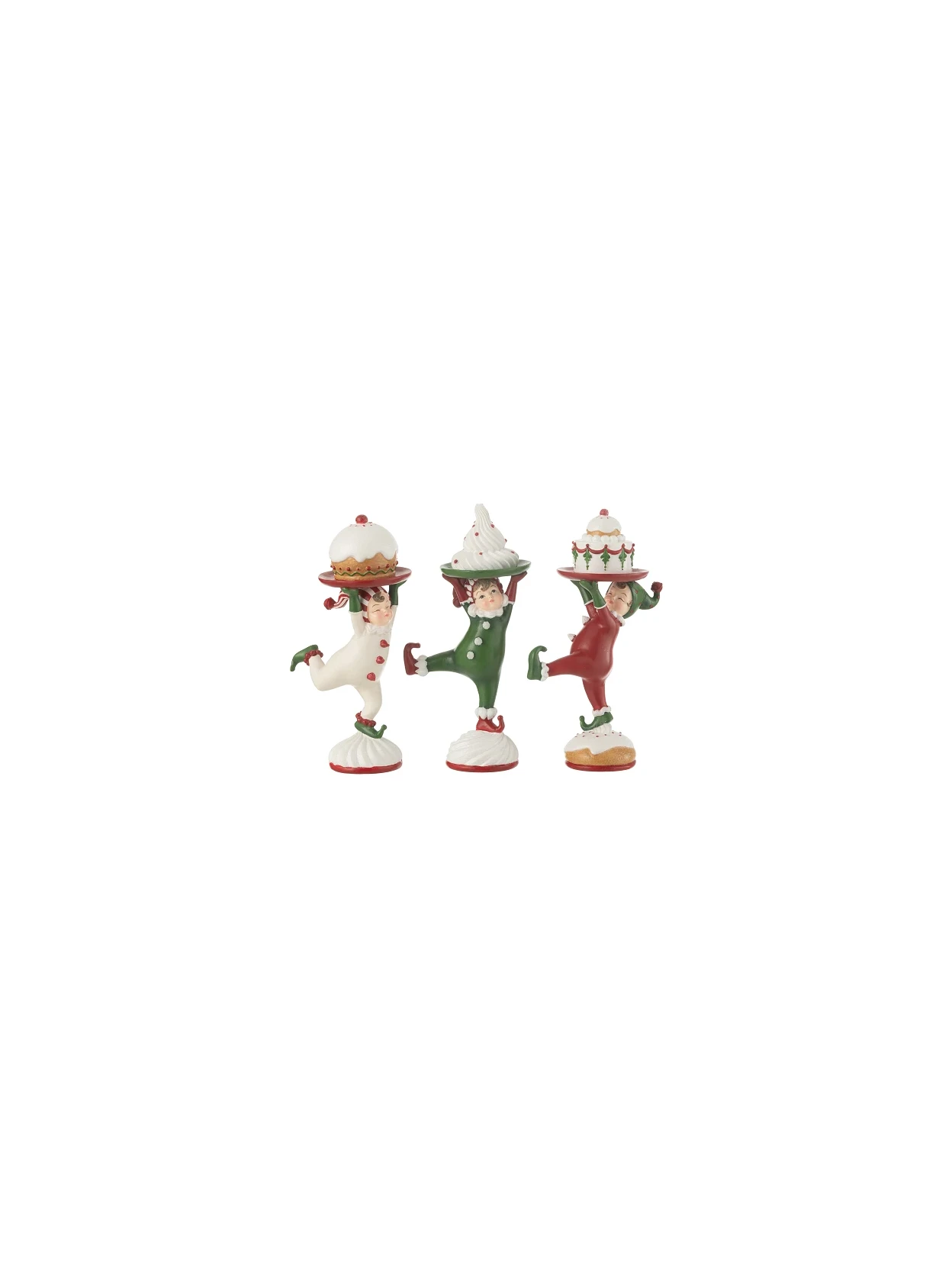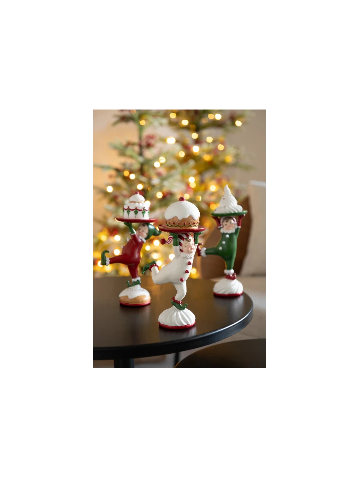 Resin pastry elf with Christmas sweets. Available in three colors: red, green, and white. A cheerful and festive decoration.
