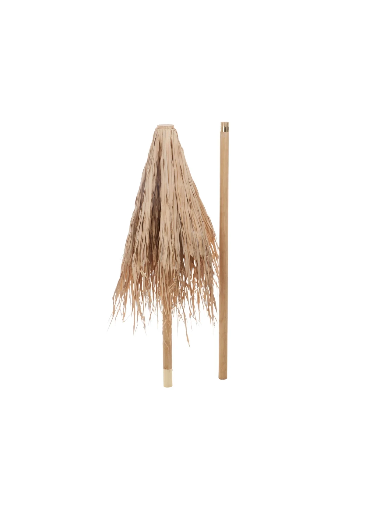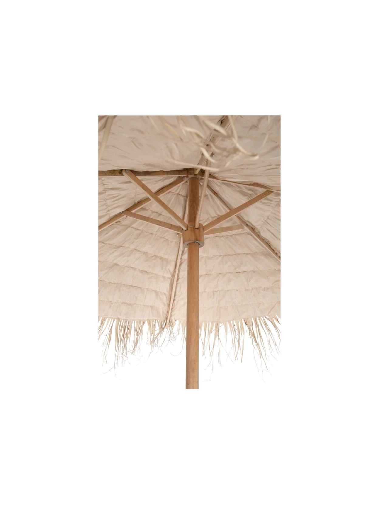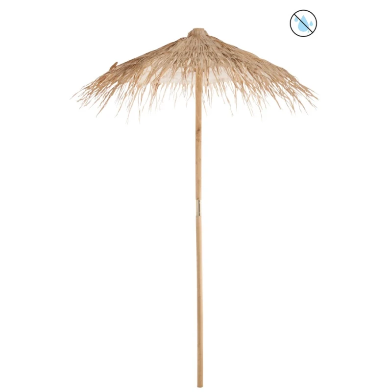 Bring a touch of natural charm to your spaces with this natural straw umbrella. Crafted from quality materials and featuring a warm, natural hue, this umbrella evokes the atmosphere of exotic beaches and gardens, transforming any corner into a welcoming and inviting space. Standing 270 cm tall and offering a 150x150 cm canopy, it offers balanced proportions and a compact design, perfect for interiors or sheltered spaces where you want to create a decorative focal point. The lightweight structure and natural color make this umbrella versatile and easily adaptable to a variety of decor styles, from rustic to boho-chic, instantly bringing warmth, charm, and personality to any space.