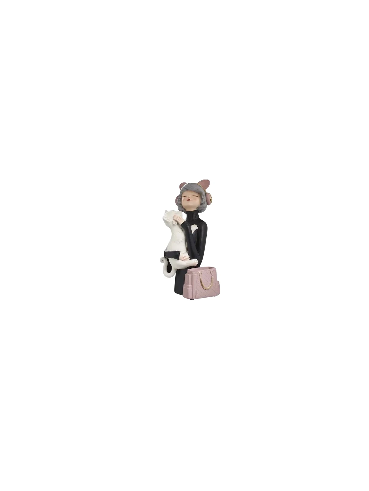 The Aurora resin decoration from Henriette's Majorette collection depicts a woman dressed in black delicately holding a cat. Crafted with attention to detail, this sculpture combines elegance and sweetness, becoming a distinctive piece for those seeking an artistic and sophisticated touch to their home or collection.