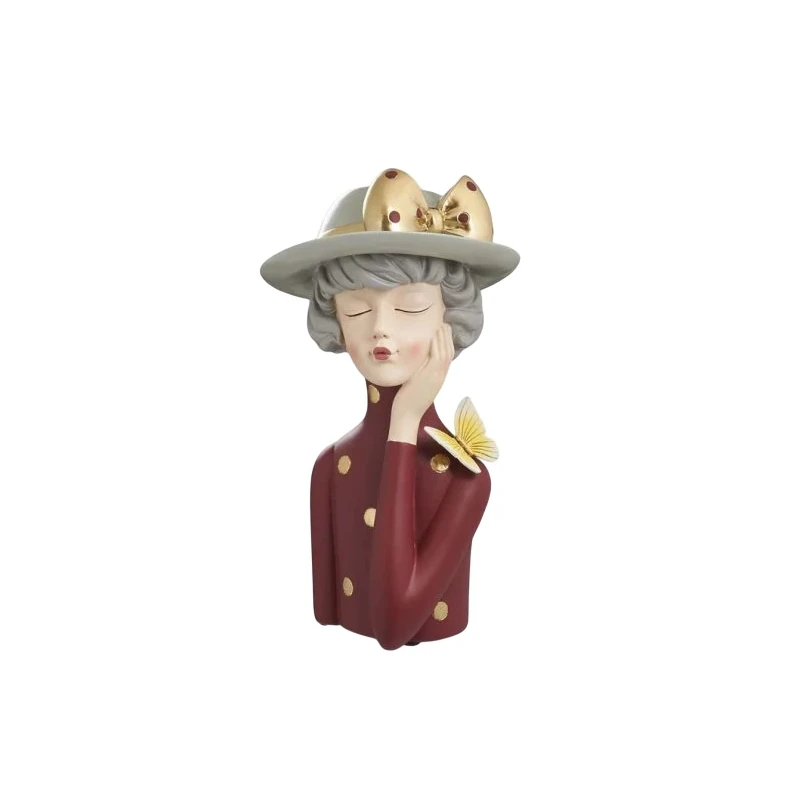 Henriette's Mimì decoration from the Majorette collection is a refined, hand-painted resin sculpture, 29 cm tall, depicting an elegant lady with her hand on her face and a butterfly perched on her shoulder. Part of the Majorette collection, this creation combines art and design with meticulous detailing and delicate colors that enhance her femininity and expressiveness. Perfect as a furnishing element for living rooms, bedrooms, or studies, Mimì adds a touch of charm and romance to any space, becoming a symbol of timeless beauty, grace, and harmony.