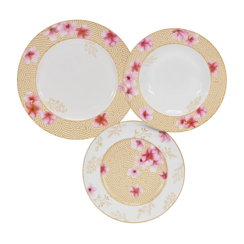 Discover the 18-piece Peach Dinnerware Set by Henriette, crafted from high-quality porcelain. This multicolored, elegant, and functional set is perfect for any occasion, from everyday lunches to dinner parties. Dishwasher and microwave safe, it combines practicality and style, making every meal a pleasant experience. Ideal for those seeking design and durability in a single set.