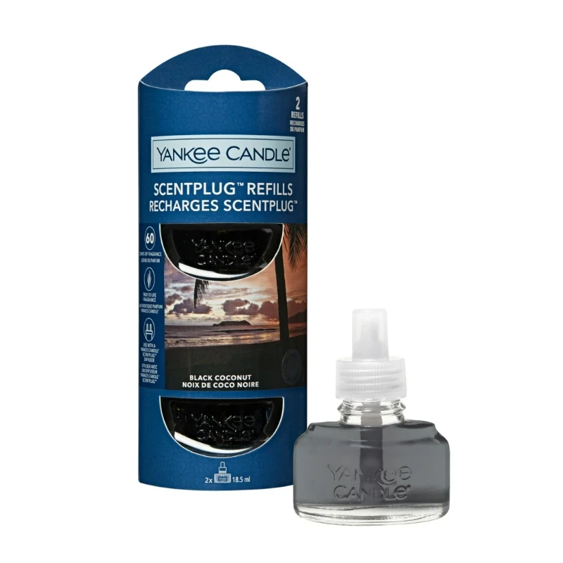 The Yankee Candle® ScentPlug electric diffuser refill, Black Coconut, is a rich, exotic floral fragrance that transports the senses to a tropical paradise at sunset. An intense and enveloping blend that begins with the creamy sweetness of coconut and fruity pineapple, evoking the warm, golden atmosphere of a beach at dusk. The floral heart of coconut blossom adds a delicate, tropical note, while base notes of musk, woods, and powdery nuances complete the composition with elegance and serenity.