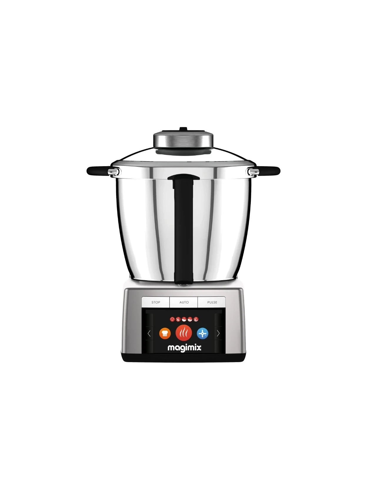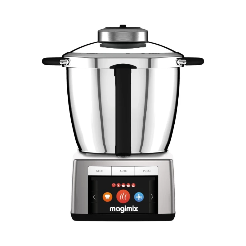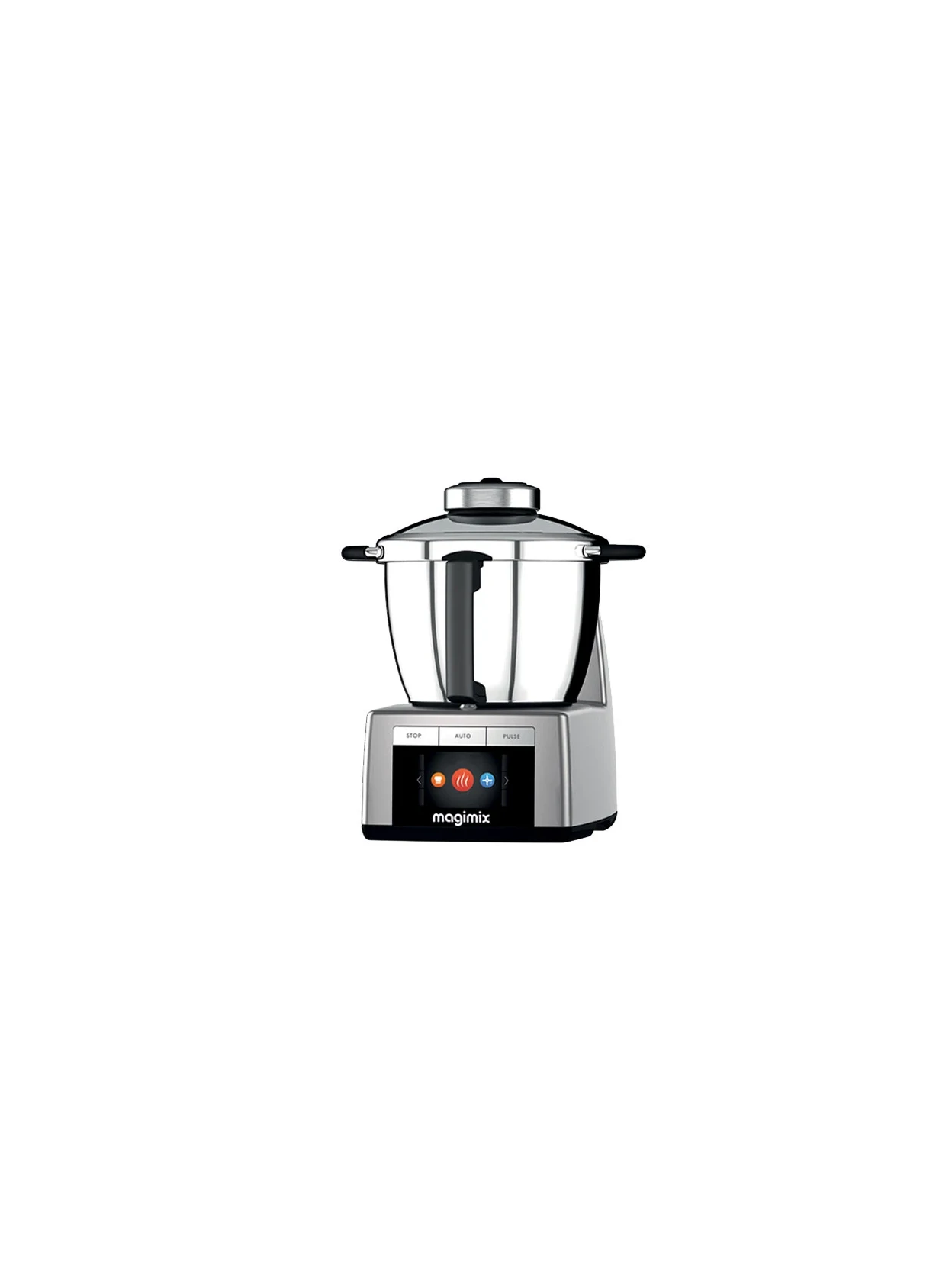Cook Expert by Magimix is the multifunctional food processor with induction cooking, featuring automatic programs and an intuitive digital display. Thanks to its 3.5-liter stainless steel thermal bowl and three transparent bowls, it cooks, chops, kneads, emulsifies, slices, and grates with professional precision. Complete with scales, accessories, and over 450 guided recipes, it guarantees perfect results every day.