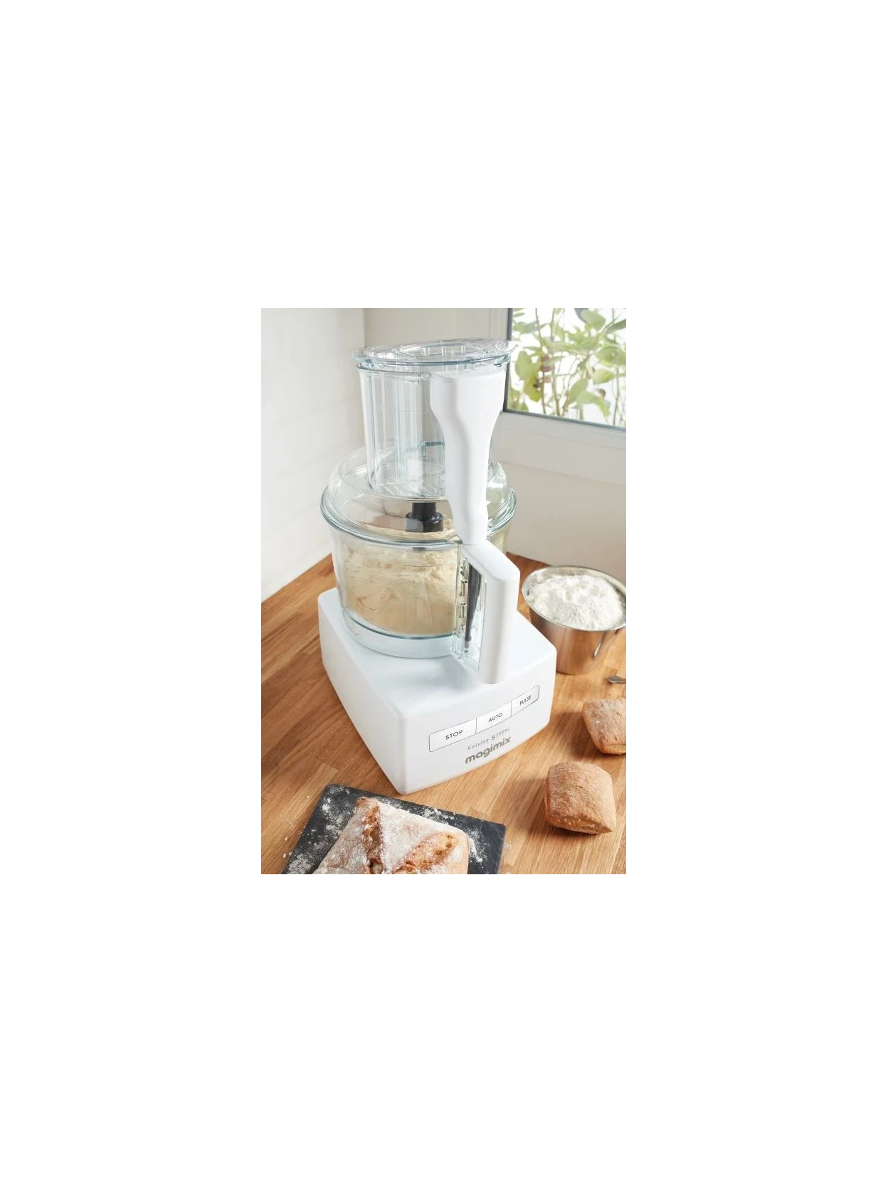 The Magimix 5200 XL is a high-capacity multifunction food processor that cuts, chops, kneads, blends, and minces with impeccable results. Equipped with three independent bowls, Sabatier surgical steel blades, and a professional motor with a 30-year guarantee, it allows for quick and precise preparation of both raw ingredients and hot dishes. Powerful, intuitive, and complete with numerous accessories, it is the ideal solution for a creative and organized kitchen.