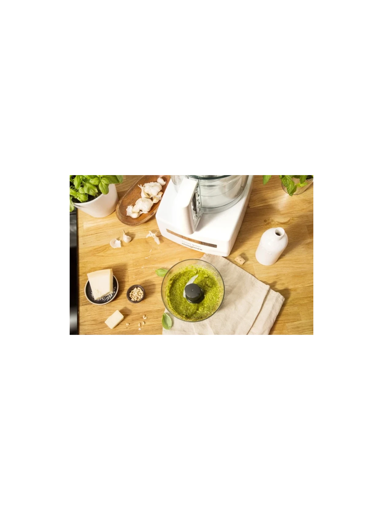 The Magimix Cuisine System 5200 XL is a multifunction food processor designed to deliver professional performance in every preparation, from chopping and mixing to kneading and grating, and even the most delicate preparations. Thanks to its three sturdy, independent, transparent polycarbonate bowls, it allows you to process different preparations in sequence without wasting time. The quiet, self-adaptive 1100W asynchronous motor automatically adjusts power based on the quantity of ingredients, ensuring efficiency and durability, so much so that it is covered by a 30-year warranty. The Sabatier surgical steel blades ensure precise and rapid cuts, while the XL mouth allows you to process whole fruits and vegetables, optimizing kitchen time. The processor comes with a wide range of accessories, including a dough paddle, whisk, knives, a set of 2 and 4 mm slicing and grating discs, a Blender Mix for creamy preparations, a spatula, and a book with 40 recipes that complements the free app full of tips and inspiration. Its large capacity, allowing you to knead up to 1.2 kg of bread, prepare up to 1.8 liters of cream soup, or process up to 1.4 kg of meat, makes it perfect for both large families and those who enjoy creative cooking. With BPA-free materials, a sturdy construction, a compact design, and a handy storage compartment for accessories, the Magimix 5200 XL is a complete and reliable ally for tackling any recipe with ease and professional-level results.