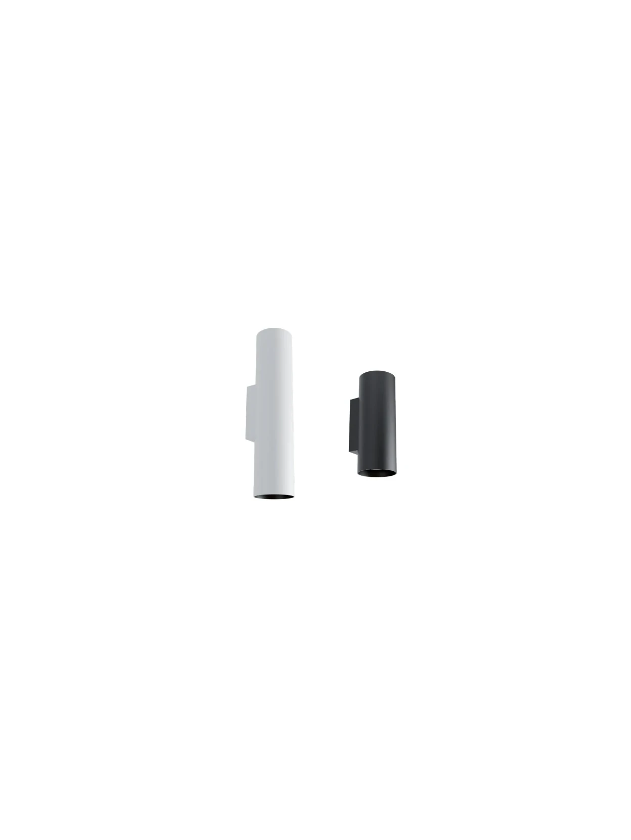 Double emission wall lamp made of matt white or matt black or matt gold metal with black interior.