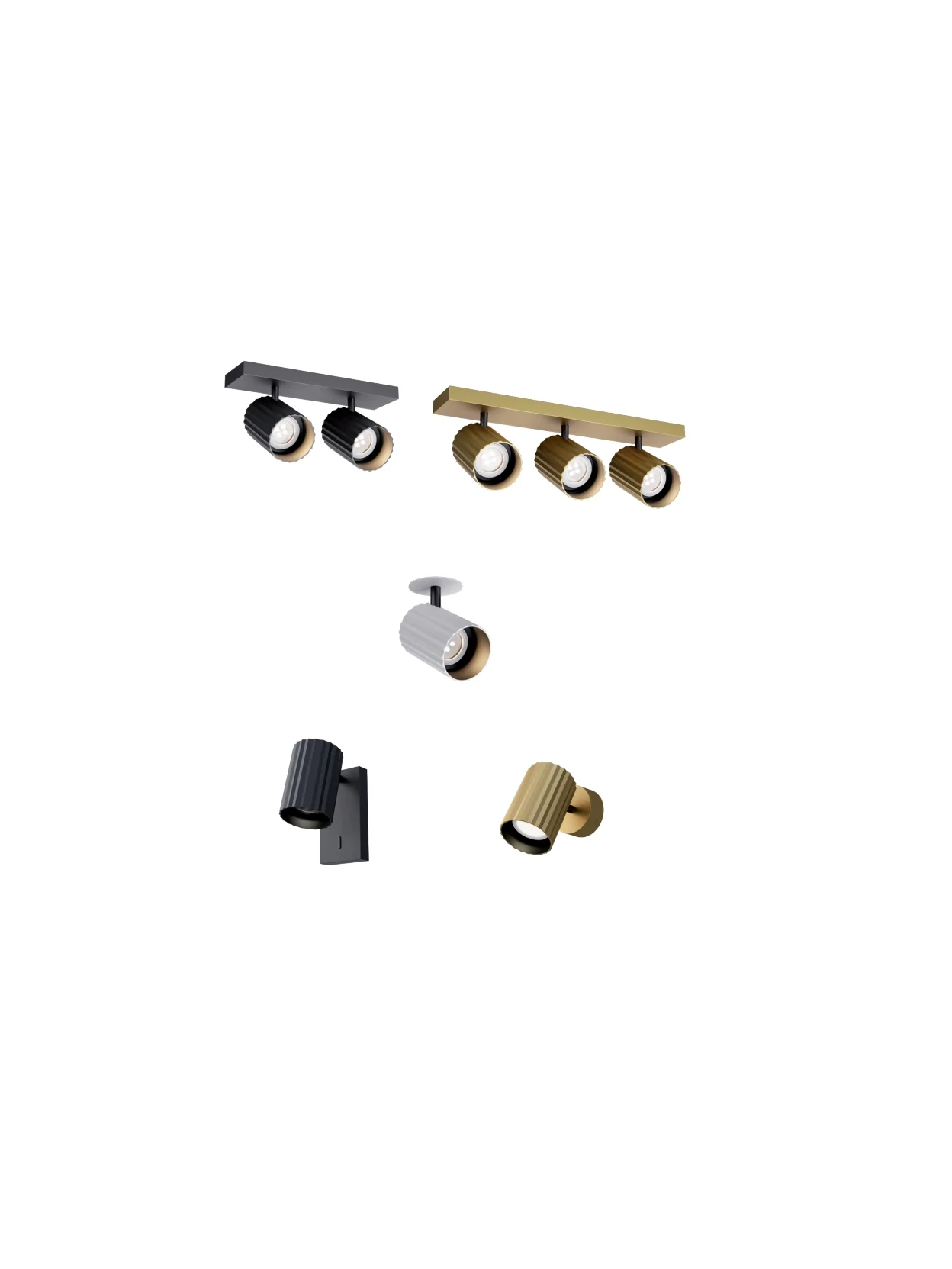 Delphi by Redo Group is an adjustable mini projector; the ideal choice for targeted and stylish lighting. Designed for ceiling or wall installation, it houses a PAR16 LED bulb with a GU10 socket (max 7W). The extruded aluminum frame is powder-coated in white, black, or matte gold on the outside, with a contrasting matte black interior. Powered by 220–240V, 50/60Hz, it has an IP20 rating and protection class I.