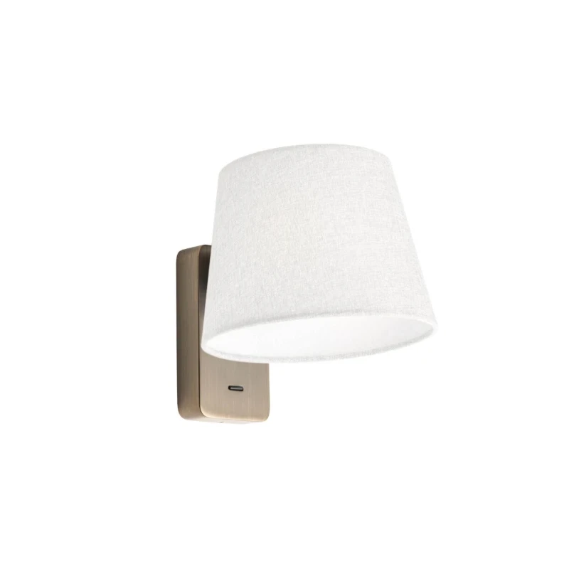 Compatible with E27 bulbs up to 15W, it allows you to choose the light that best suits your needs. The NEMIA series offers the option of customizing the wall light with interchangeable lampshades in a variety of colors: black, beige, gray, and dove gray. Each lampshade is made with a white painted metal frame and fabric laminated to fireproof PVC, ensuring safety, elegance, and optimal light diffusion. Thanks to its refined design and quality materials, the NEMIA in antique bronze enhances any space with a soft, warm light, combining classic and contemporary styles. With IP20 protection and a 2-year warranty, it represents a reliable, customizable, and elegant choice for interior lighting.