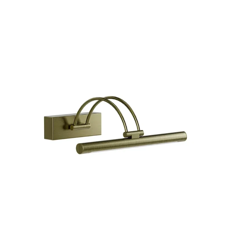 SMD LED wall lamp with metal frame in antique brass finish and diffuser made of satin polycarbonate.