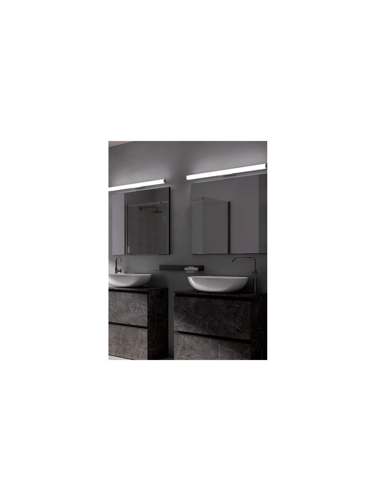 Kali by Redo Group is a wall/mirror lamp with a linear design, ideal for illuminating indoor spaces, even those subject to humidity, thanks to its IP44 rating. The structure is made of metal and aluminum with a matte white powder coating, with an opal polycarbonate diffuser for diffused, comfortable light. Equipped with high-efficiency SMD LEDs with CCT function, it allows for a color temperature selection between 3000K and 4000K, adapting to different lighting needs. The high CRI 90 ensures natural color rendering. Perfect for general lighting or as a wall lamp above a mirror in bathrooms, hallways, or utility areas.