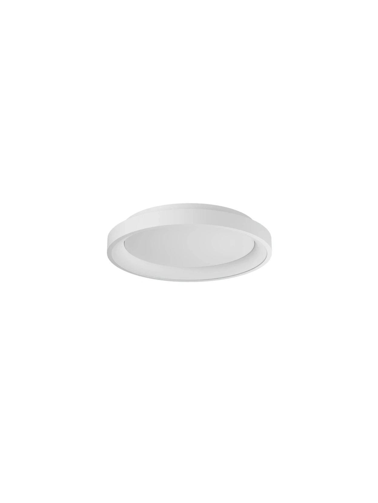 Iconic by Redo Group is a modern interior LED ceiling lamp featuring a 3-step dimmer and adjustable color temperature from warm white (3000K) to neutral white (4000K). Its metal and aluminum frame is painted matte white, with a white opal acrylic diffuser for a soft, even light. High-efficiency SMD LEDs with a CRI of 90. Class II, IP20 – Power supply 220–240V, 50/60Hz.