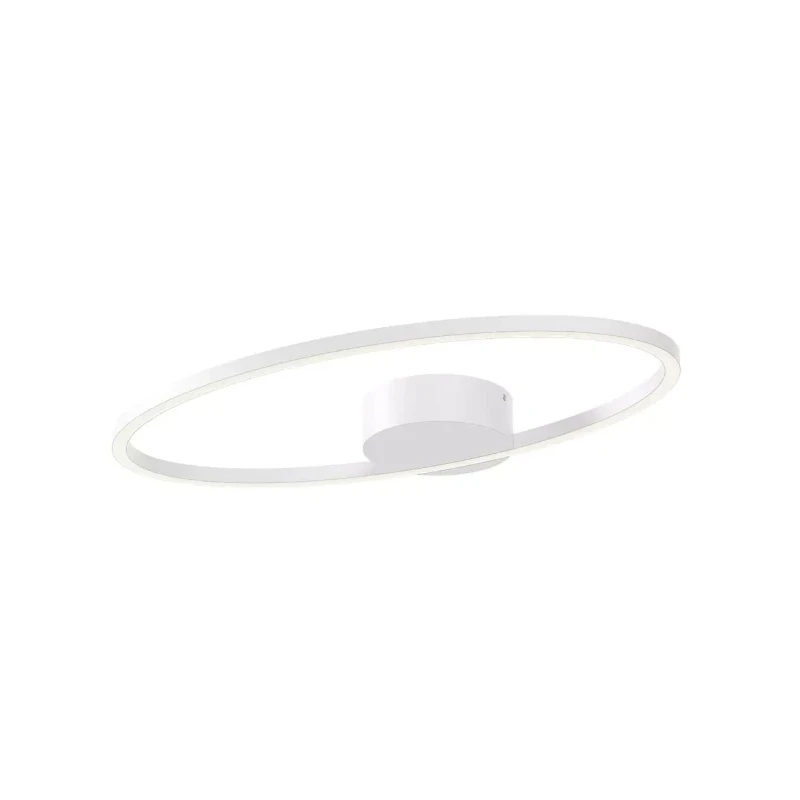 LED ceiling lamp with a matte white metal and aluminum frame. Satin white PVC diffuser.