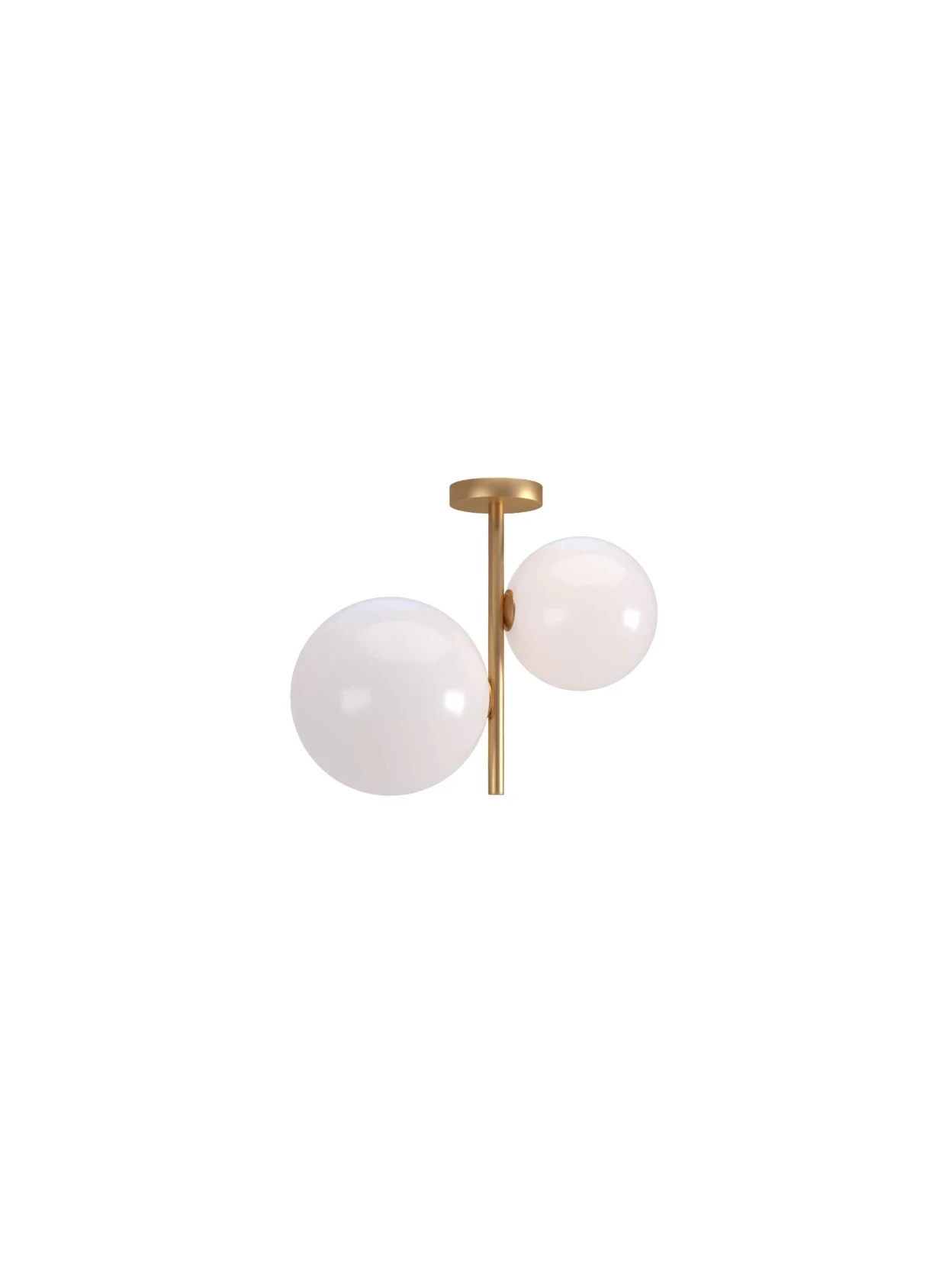 Talis by Redo Group is a ceiling lamp with a minimalist and modern design. With its brushed bronze-finish metal frame and opal white blown glass diffusers, this ceiling light brings a timeless elegance to interiors. The meticulous craftsmanship and the contrast between the warm bronze hue and the purity of the glass create a perfect balance between classic and contemporary style. Designed for two E27 bulbs up to 42W each, it allows you to freely choose the intensity and tone of the light, adapting to different times of day and desired atmospheres. It fits naturally into living rooms, bedrooms, dining rooms, or entryways, becoming a decorative element as well as a source of illumination.