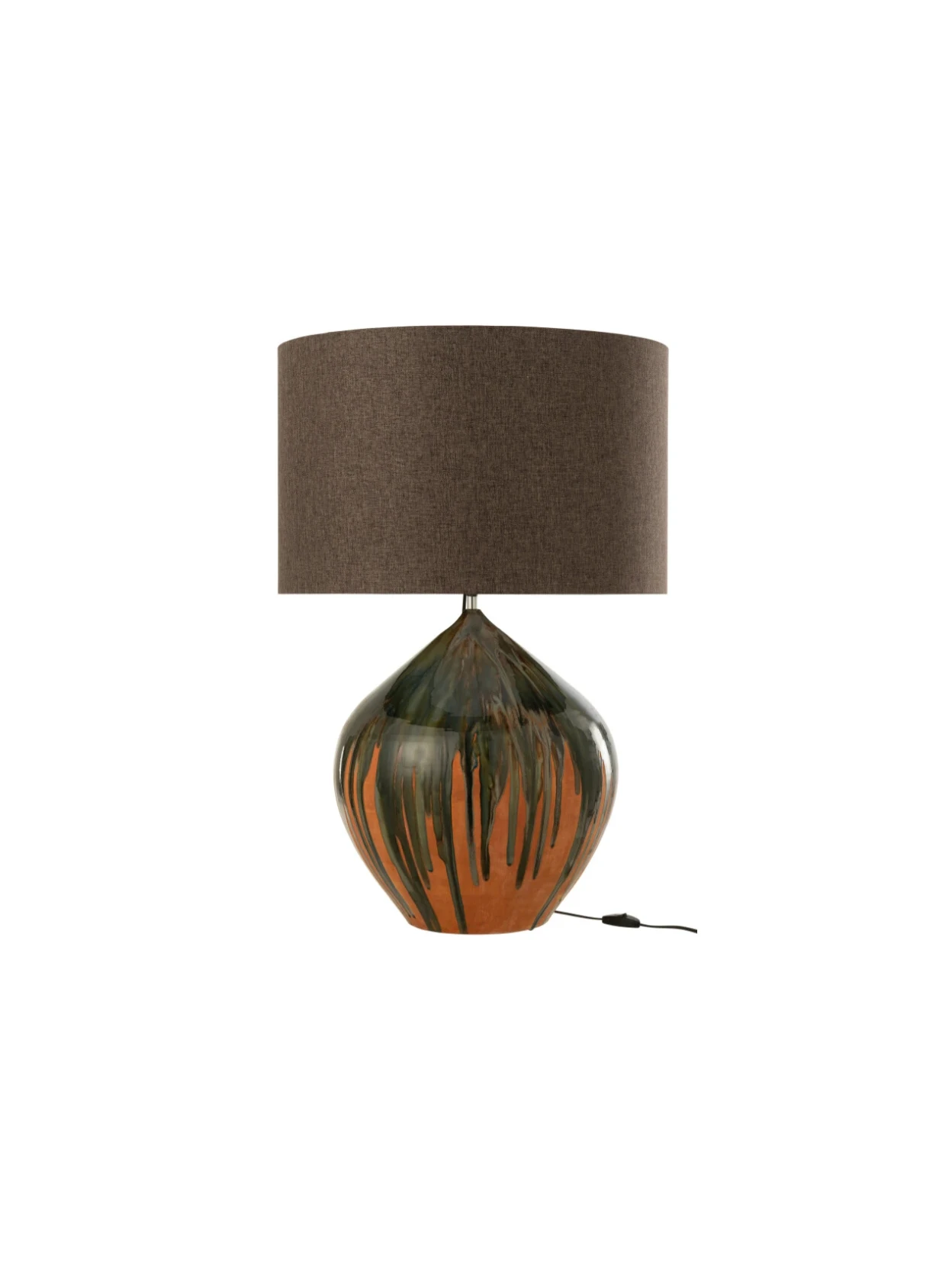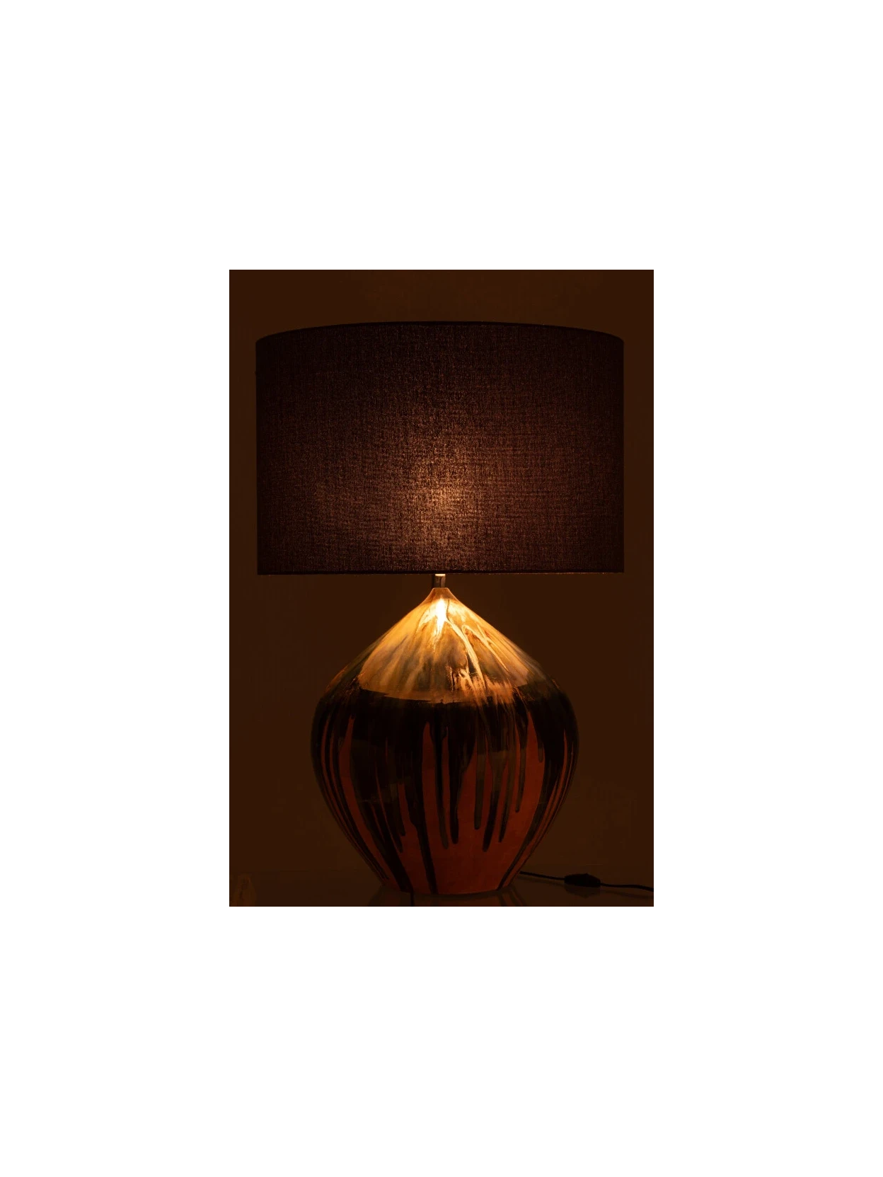 A unique design piece: this ceramic lamp with a dripping paint effect transforms any room into a sophisticated and creative space. The ceramic base, featuring dripping glazes that glide across the surface, creating a play of color and movement, makes each piece truly authentic. The large lampshade completes the structure, diffusing a soft, enveloping light, ideal for the living room, reading area, or bedroom. Standing 83 cm tall and combining functionality and decoration, this lamp is perfect for those seeking a furnishing accessory that combines elegance, modernity, and artistic originality.