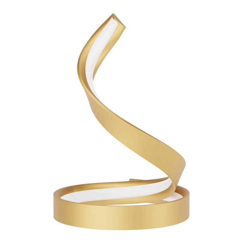 Modern design and functionality in a single piece of furniture. Made of metal and matte gold aluminum, the Torsion offers touch-dimmable LED lighting with an adjustable color temperature from 2700K to 4000K. 11W power, high light output (up to 1597 lm) and a CRI>90 for natural and comfortable light. Perfect for a desk or bedside table.