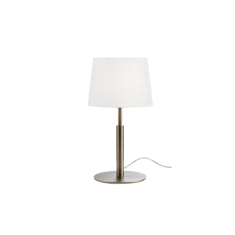 Redo Group's Nemia is an elegant table lamp with a antique bronze finish, designed to enhance any space with its warm, refined light. Its modern design and choice of beige, dove gray, or black lampshade make it a versatile and irresistible furnishing accessory, ideal for creating a stylish atmosphere.