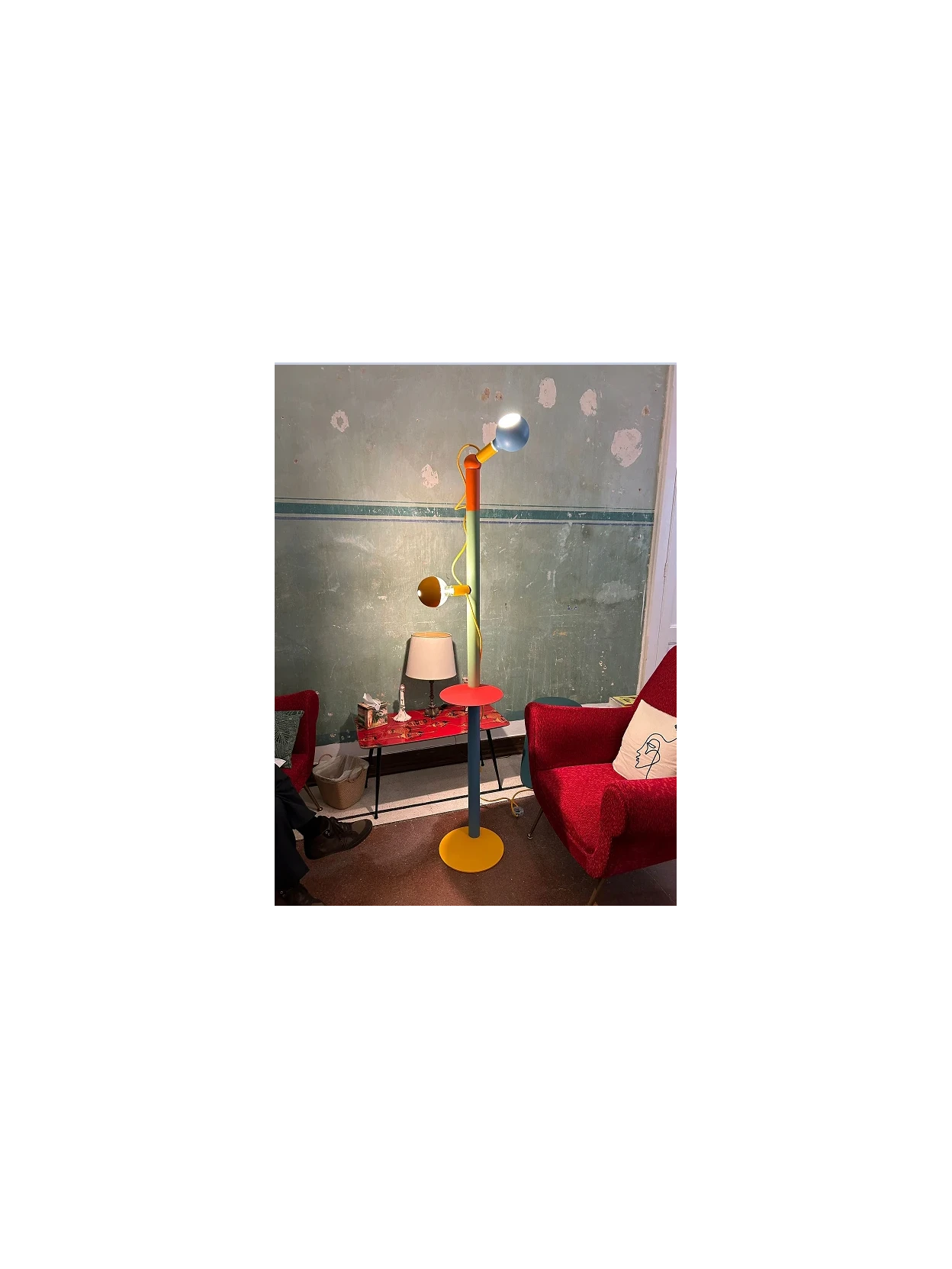 The Rocco XXL Pride floor lamp by Filotto is a modular iron lamp with a matching magnetic catenary and integrated table, designed to combine aesthetics, practicality, and creative freedom. The structure, featuring a loop running the length of the lamp, elegantly accommodates the cable, transforming it into a decorative element. The magnetic sphere at the end allows the light to be directed in any direction, creating dynamic and personalized lighting effects. Two LED lamps are included: the Maria, with a partial paint finish that diffuses a warm, comfortable light, and the Camo, colored and with a double porthole for targeted and directional lighting. Both are dimmable, energy-efficient (7W, E27 socket), and compatible with all lamp holders in the Filotto collection. With the 2-module magnetic catenary and 3-meter cable, you can create endless lighting configurations, playing with positions and intensity to add character and color to spaces. The Rocco XXL Pride is more than a lamp: it is a furnishing object that expresses energy, design, and creative freedom.