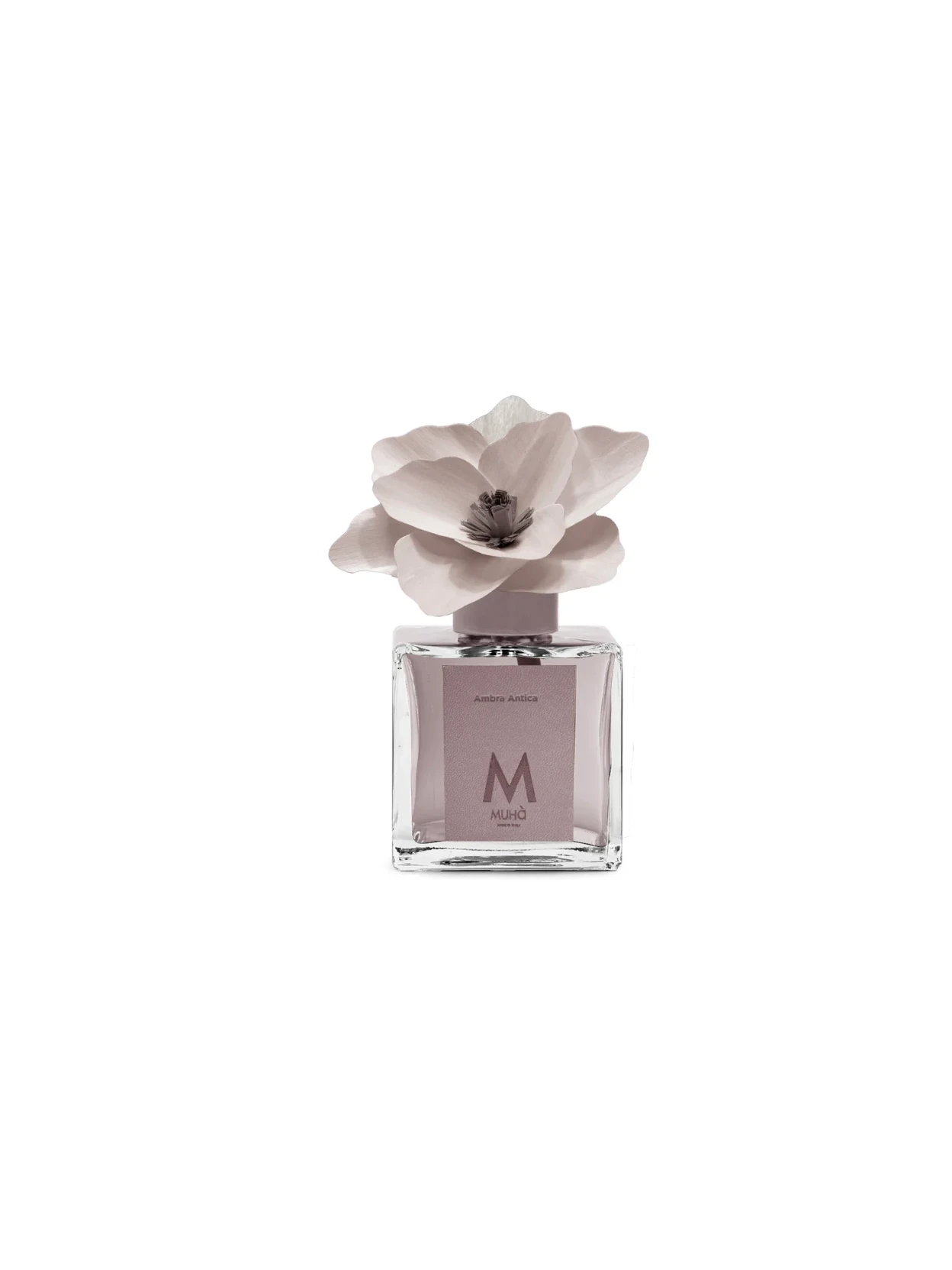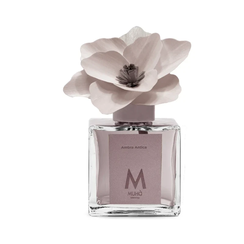 "Ambra Antica" reed diffuser; a fragrance that takes you on a sensory journey, combining delicacy and warmth in enveloping harmony. Soft woody notes create a refined and reassuring base, enriched by sweet and soothing nuances of rose and hawthorn, which bring balance and lightness to the composition. Eucalyptus, with its deep and intense breath, adds freshness and character, while patchouli and ylang ylang envelop the composition in a warm, sensual, and lingering embrace. The result is a fragrance capable of transforming the room into a haven of peace and well-being, evoking the sensation of a daydream.