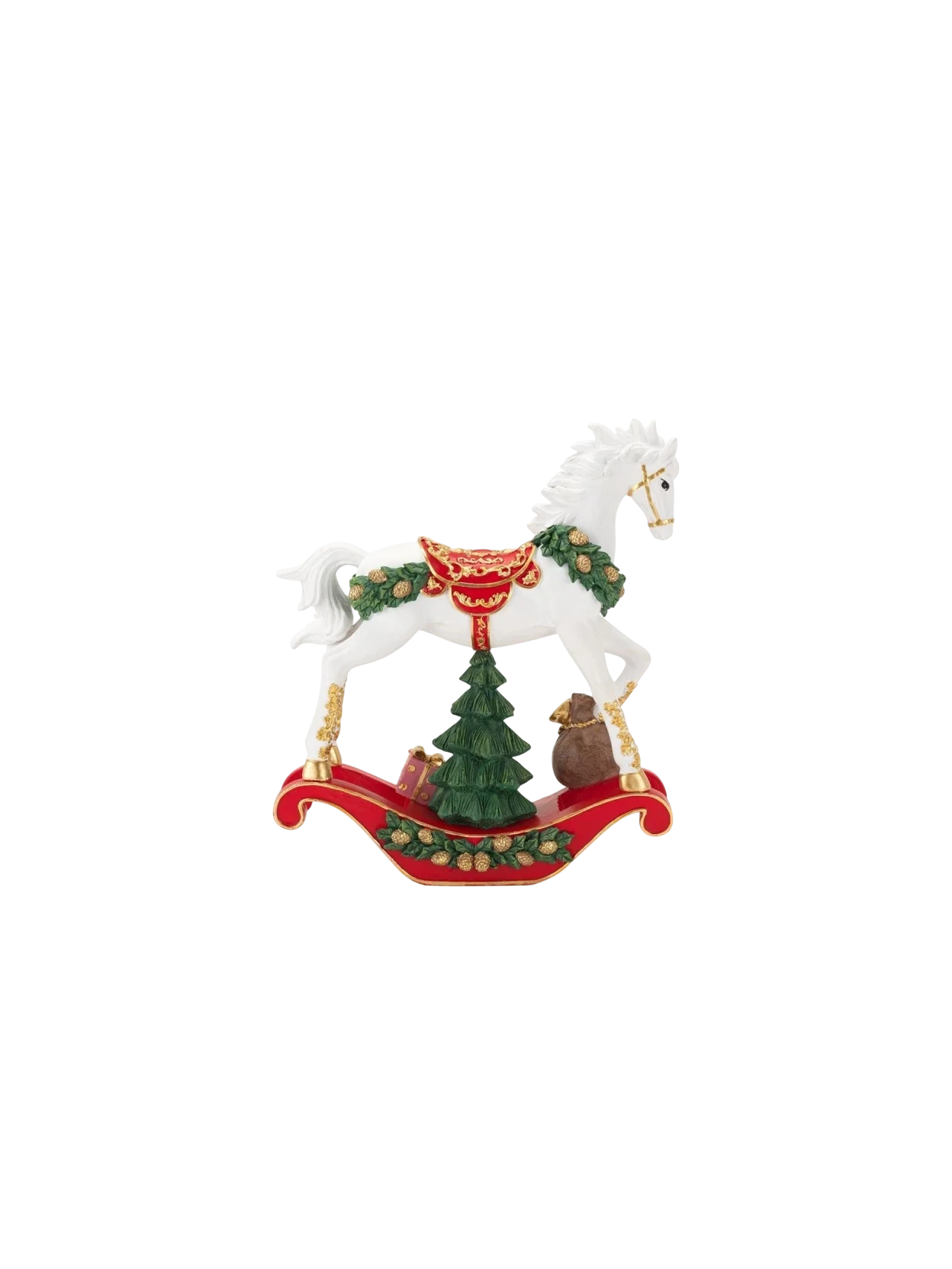 Henriette's Rocking Horse, 35.5 cm high, is much more than a simple decoration: it is a timeless symbol of childhood and Christmas joy. Crafted from hand-painted resin, it stands out for its soft lines, gold details, and warm red tones, lending it an irresistible vintage charm. Perfect as a decorative element for the living room, entryway, or under the Christmas tree, it evokes sweet memories and authentic moments of celebration.