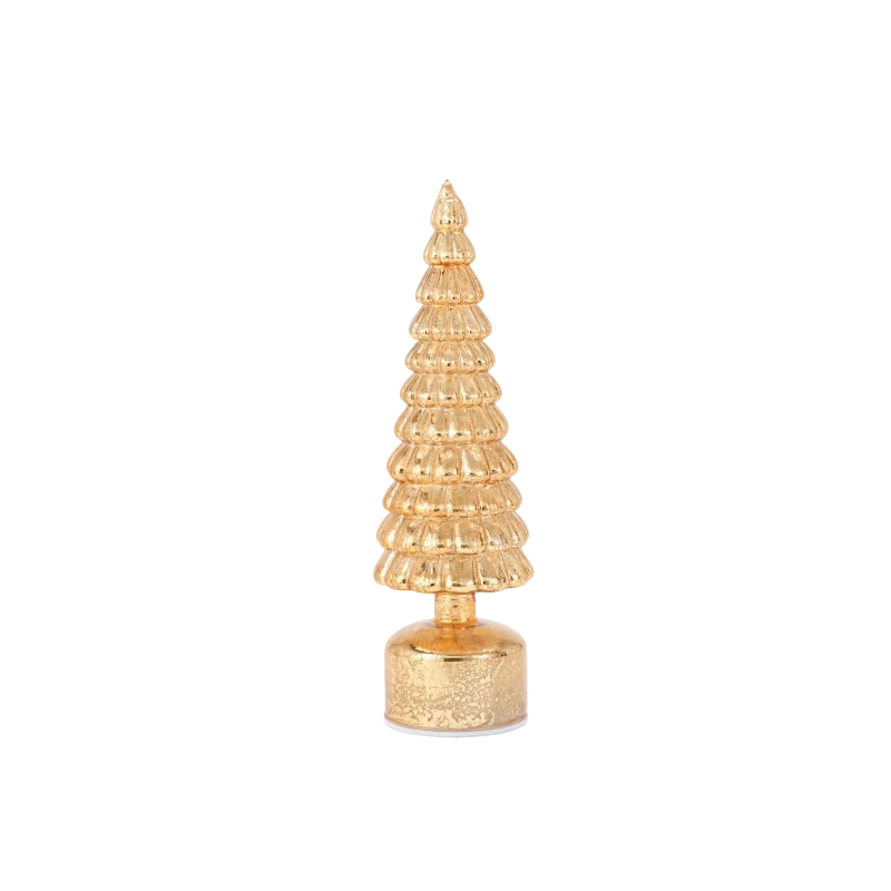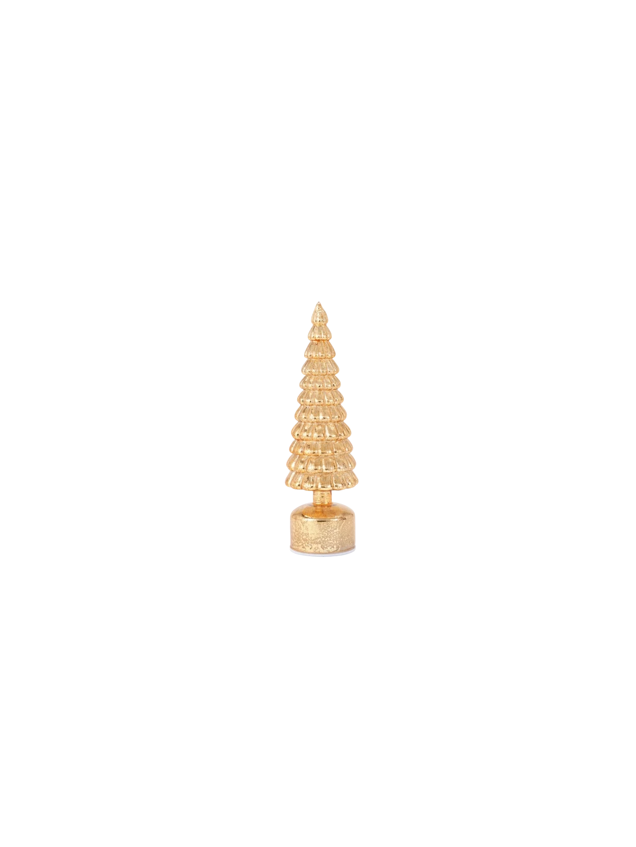 Brighten up your holidays with the gold Henriette rotating tree. Available in two sizes, it features built-in lights for a magical and decorative effect. Perfect for tables, shelves, or small festive corners.