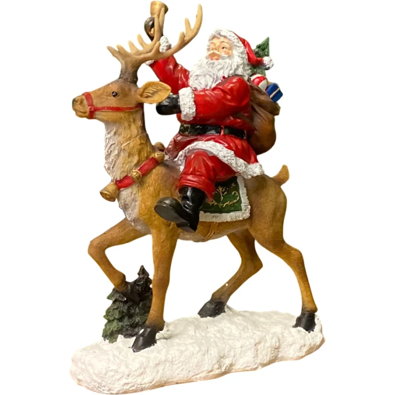 Resin decoration of Santa Claus on reindeer in the snow, designed by Henriette from the X'Mas Dreams collection. A magical touch for Christmas.