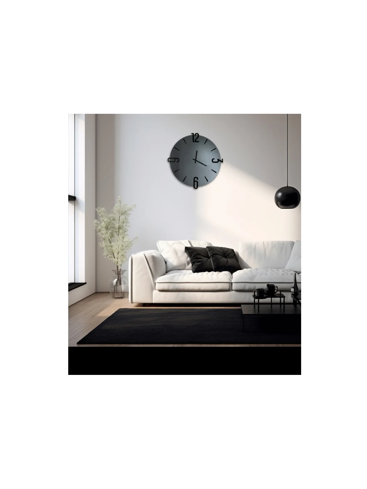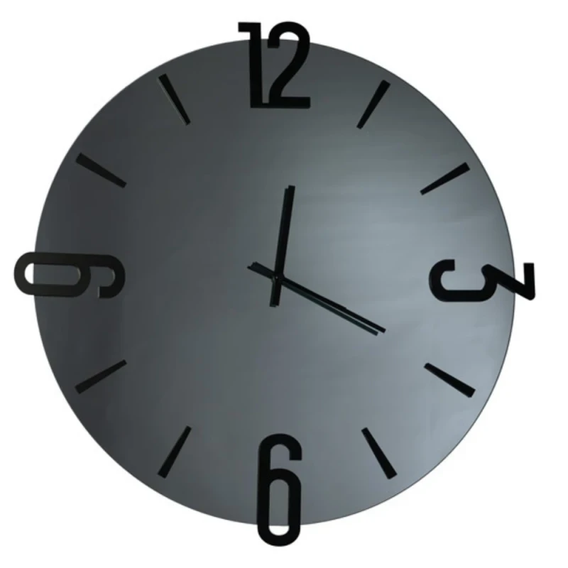 The Alfa wall clock by Ceart represents the perfect combination of functionality and contemporary design. Crafted with a smoked black mirror frame and polished edge, it stands out for its reflective surface in shades of smoked gray, which lends depth and an elegant luminous effect. The embossed numbers and indices in painted metal lend a modern and sophisticated touch, enhancing the clock's clean lines and essential aesthetic. Available in diameters of Ø 45 cm and Ø 60 cm, the Alfa clock is ideal for modern, minimalist, or industrial interiors, perfectly suited to living rooms, entryways, offices, and commercial spaces.