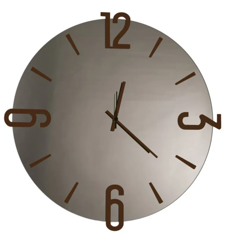 The Alfa Wall Clock in Copper Mirror and Corten Bronze by Ceart is a refined furnishing accessory that combines contemporary design and timeless elegance. The copper mirror frame, finished with a polished edge, enhances the light with warm metallic nuances, while the Corten bronze painted metal numbers and indices create a sophisticated contrast and strong visual impact. Available in 45 cm and 60 cm diameters, this wall clock fits perfectly into modern, minimalist, or industrial environments, enhancing living rooms, entryways, offices, or commercial spaces. The clean lines and reflective copper surface lend depth and luminosity, transforming the simple passage of time into a decorative element of pure Ceart design.